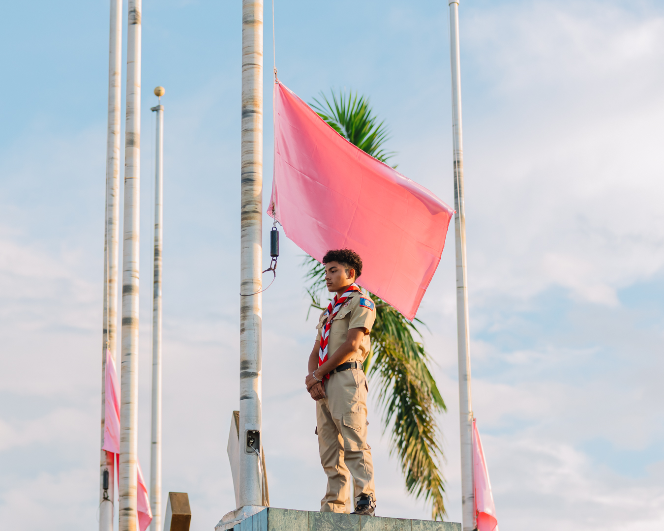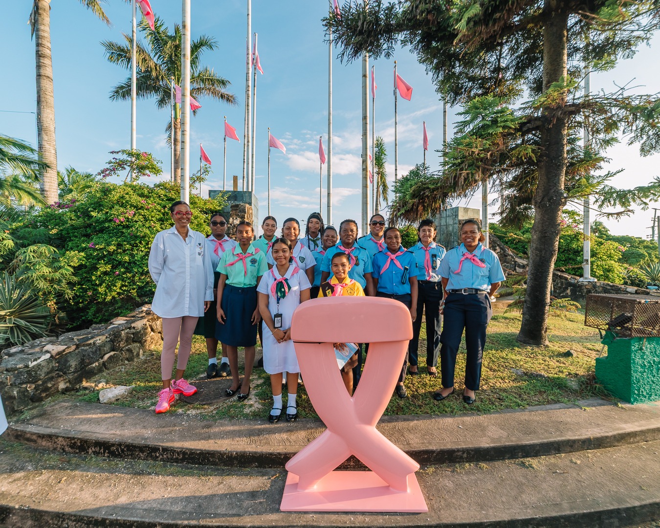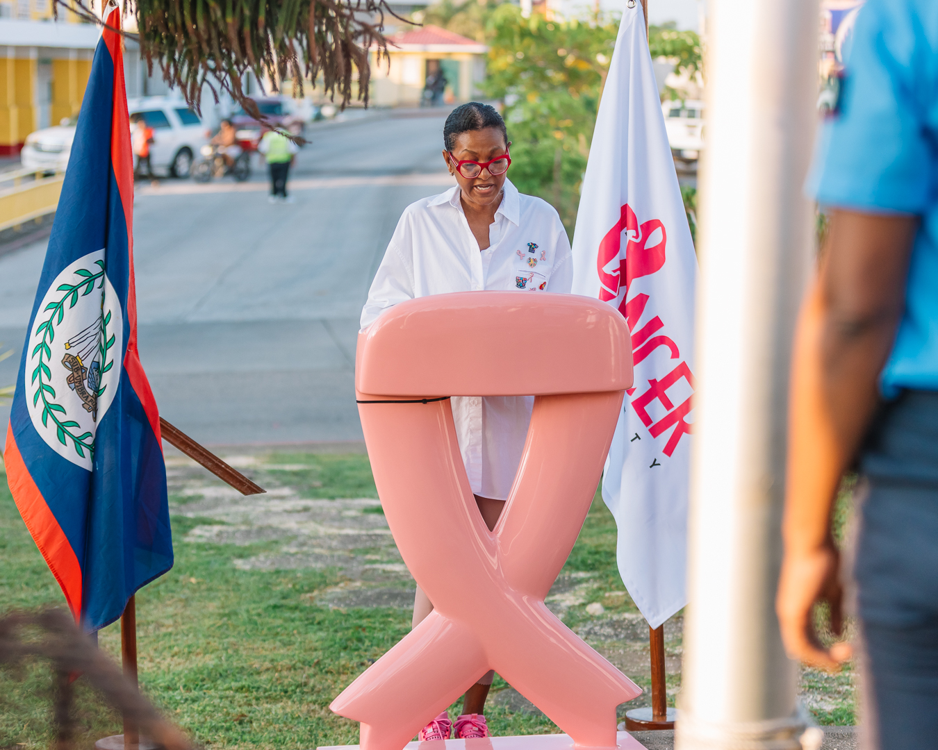 The ceremony featured members of the Belize Girl Guides Association and the Scout Association of Belize, who raised pink flags symbolizing strength and unity in the battle against the disease.