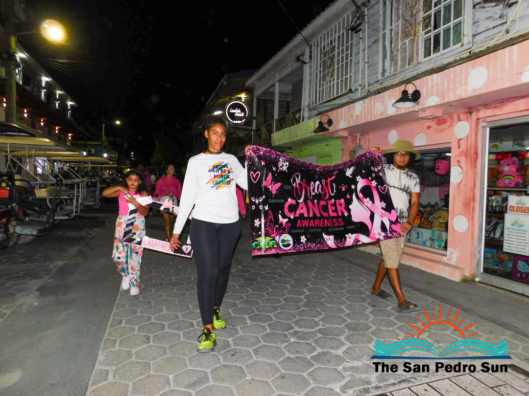 To honor those who have lost their battle with breast cancer and support those still fighting the disease, a group of islanders gathered at Central Park on Friday, October 31st, for an awareness walk through downtown San Pedro. The event saw participation from the San Pedro Lions Club, Dr. Otto Rodriguez San Pedro Polyclinic II, local athletes, the island’s Health Department, the Labour Office, and other community members.