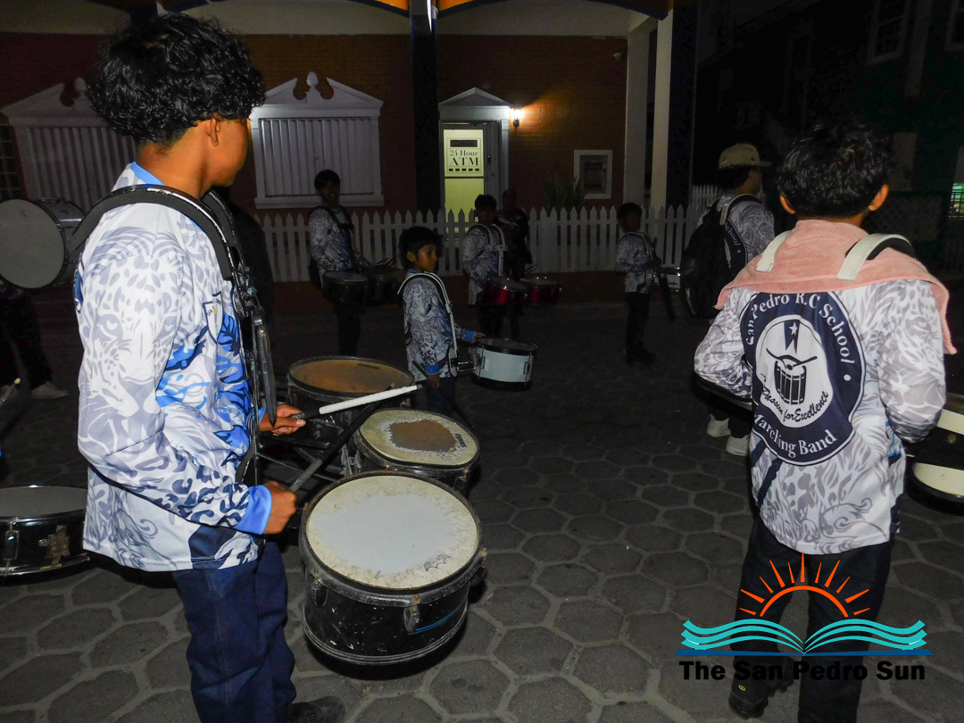 The solidarity walk began shortly after 5:30PM, heading north on Barrier Reef Drive before turning onto Pescador Drive. Led by the San Pedro Traffic Department and the San Pedro Roman Catholic Primary School Marching Band, participants circled the San Juan Roundabout before returning along Pescador Drive to Central Park. Many wore pink shirts and carried banners promoting awareness and early detection.