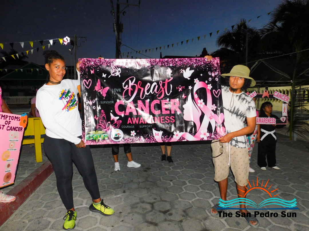 To honor those who have lost their battle with breast cancer and support those still fighting the disease, a group of islanders gathered at Central Park on Friday, October 31st, for an awareness walk through downtown San Pedro. The event saw participation from the San Pedro Lions Club, Dr. Otto Rodriguez San Pedro Polyclinic II, local athletes, the island’s Health Department, the Labour Office, and other community members.
