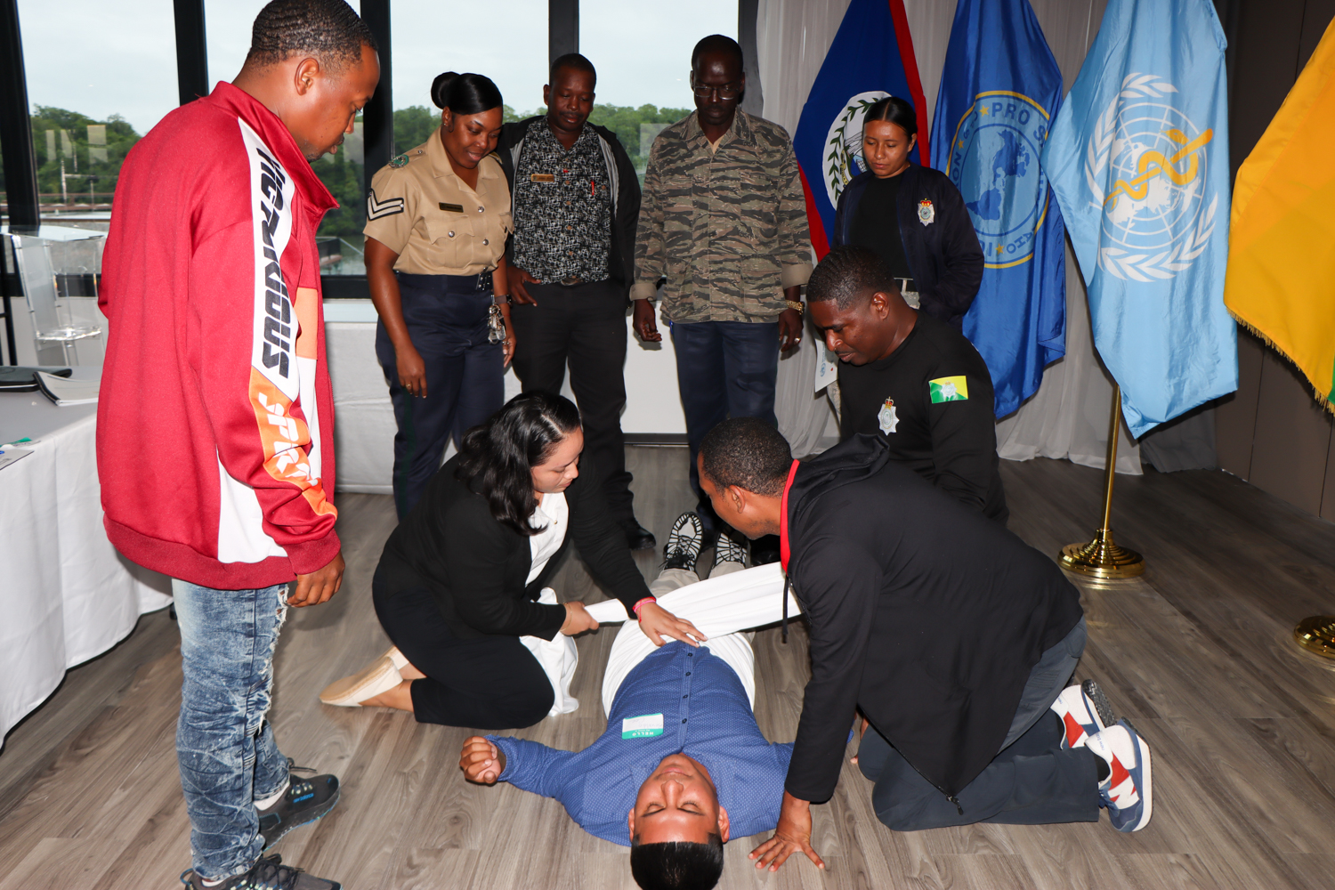 Press Release, Belize City, Belize, November 14, 2025 (PAHO) – In partnership with the University of Colorado and the Belize Police Department, the Pan American Health Organization/World Health Organization (PAHO/WHO) hosted two two-day workshops on the Community First Aid Response (CFAR) Learning Programme. The training, attended by 60 police officers from across the country, focused on enhancing their ability to respond to emergencies within their communities.