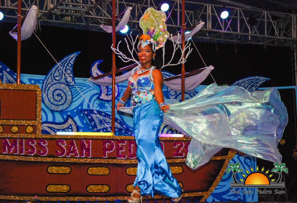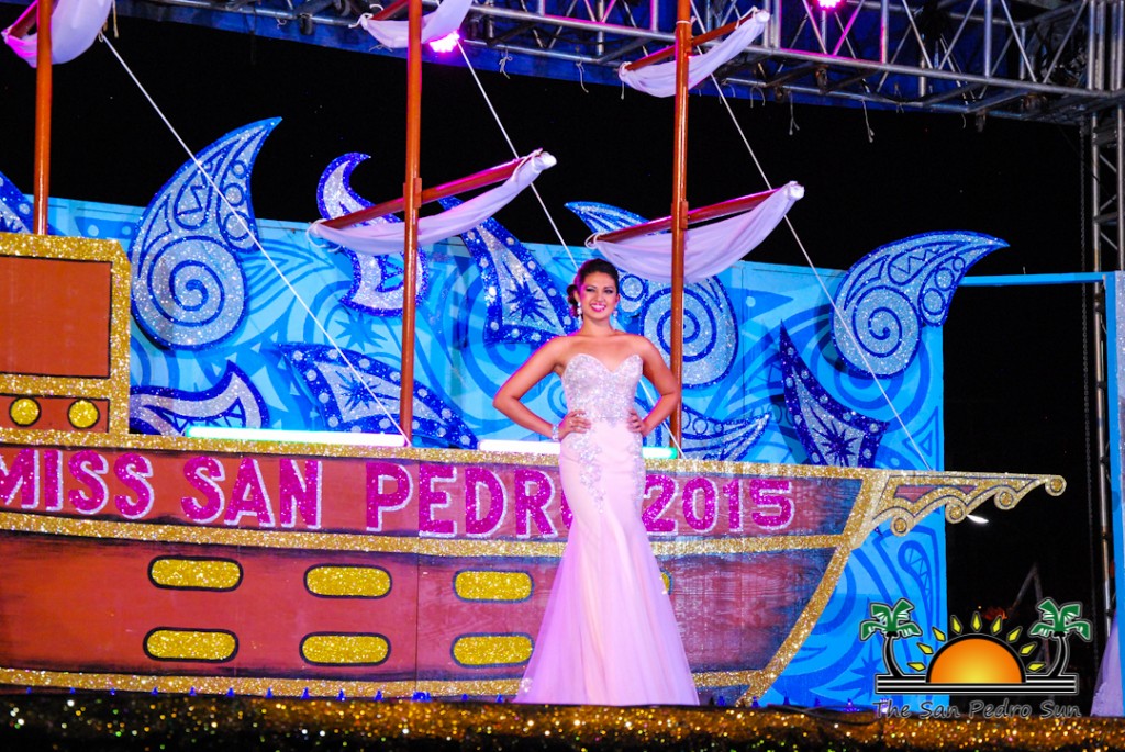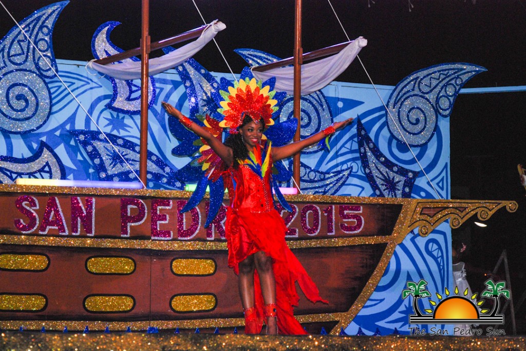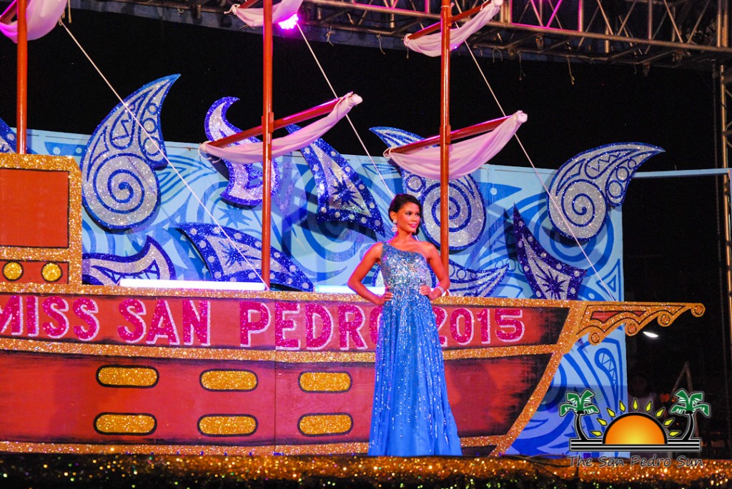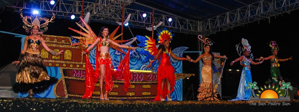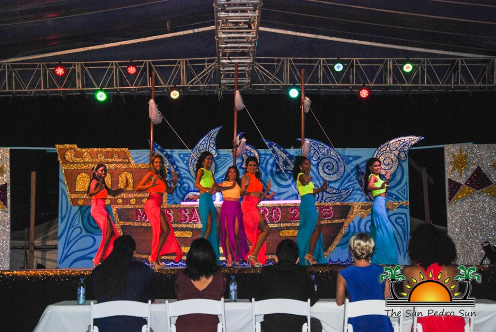 The 2015 Miss San Pedro pageant began at 8PM inside the Honorable Louis Sylvestre Stadium, with hundreds of island residents in attendance. After the National Anthem was sung, an opening number by San Pedro Jabbawockeez kicked off the night’s events. Host Eiden Salazar Jr. was once again in fine form, transitioning the evening’s various segments, starting with their introduction.