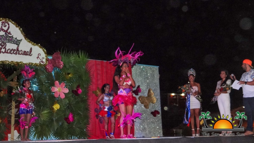 Anxiety grew as the judges passed on their decision to the hosts. In second place was Kristen Fuentes, while the title of 2015/2016 Queen of Bacchanal went to Doris Soriano. She was immediately crowned by Miss San Pedro Lions Marisha Thompson amidst cheers and much fanfare.