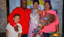 The show began promptly at 8PM at the Honourable Louis Sylvester Sporting Complex where hundreds of island residents were in attendance. After the Belize National Anthem was sung, a fun dance number by past Miss San Pedro queens opened the stage. They were followed by the six contestants taking centre stage to introduce themselves. Eiden Salazar Jr., expertly transitioned each segment of the evening’s show.