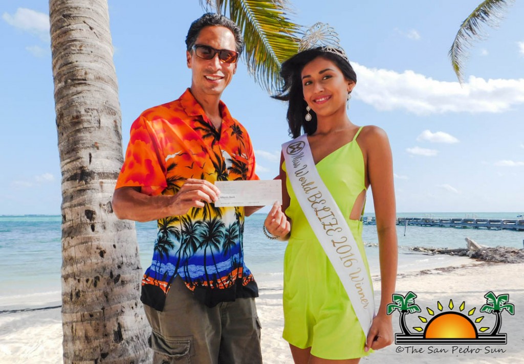 President of Acquafino Island Resort and Spa, William Narod, made a donation of $500 to Miss World Belize 2016-2017 and former Miss San Pedro 2015-2016, Iris Salguero on Thursday, November 17th. Salguero has been rigorously preparing to compete in the ‘Miss World Pageant’ on December 18, 2016.