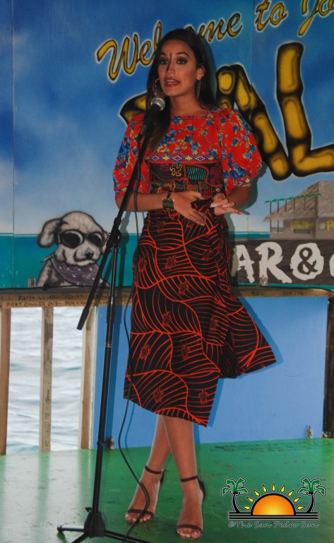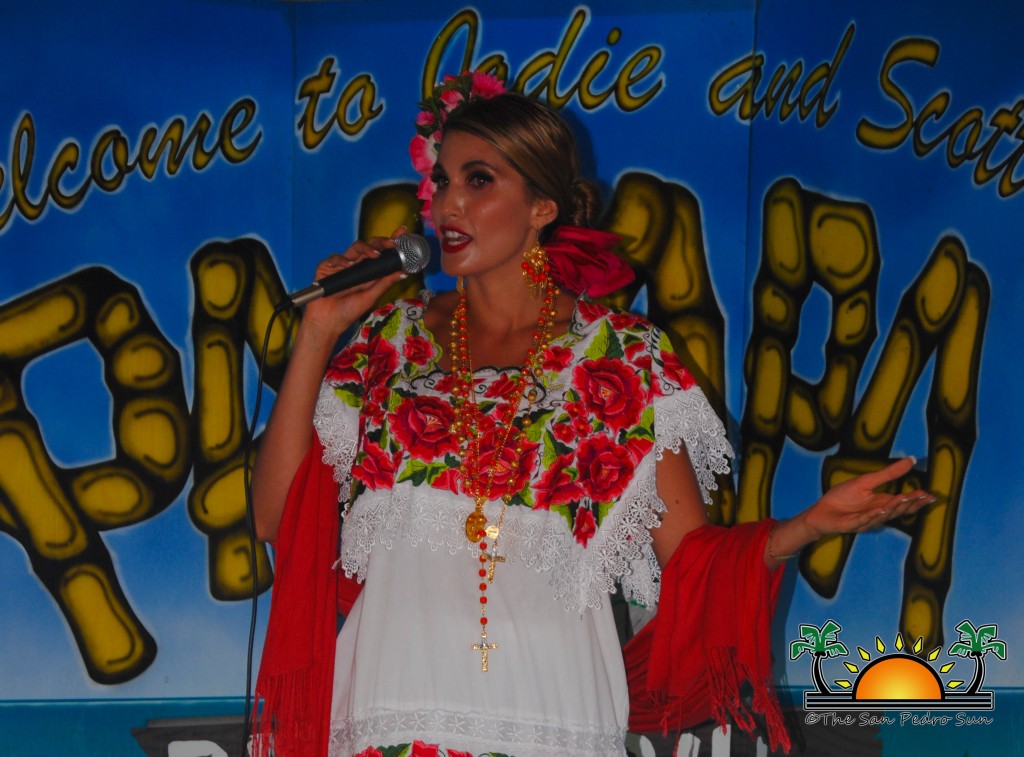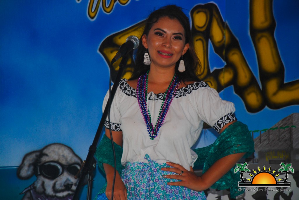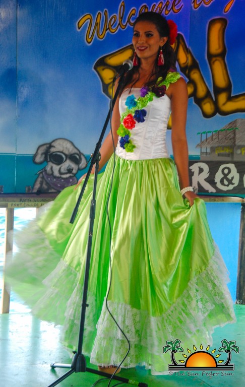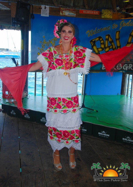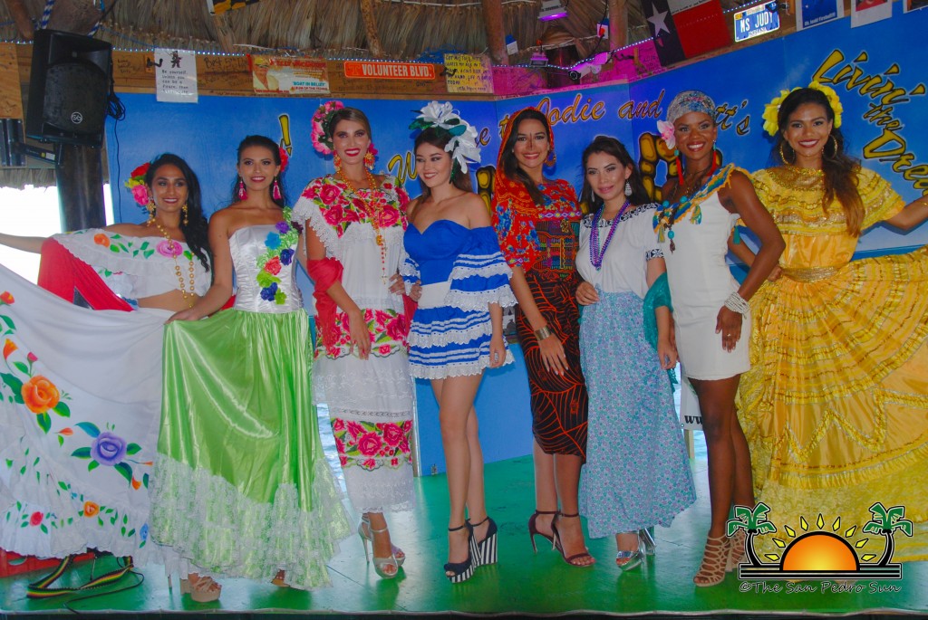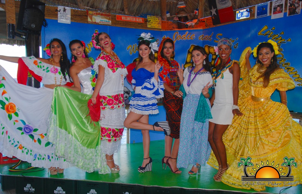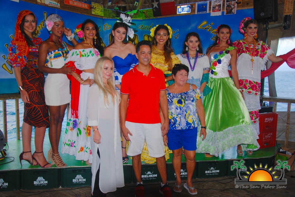 On Wednesday, August 2nd, the eight beautiful delegates for Miss Costa Maya represented their countries with vibrant colours and sounds in a National Costume preliminary competition at the Palapa Bar and Grill. The event was part of a fundraiser benefiting the San Pedro Saga Humane Society, which received much support from the girls and both visitors and island residents alike. Patrons enjoyed an evening full of music, raffles, delightful presentations by the contestants and even the opportunity to mingle and get pictures with the friendly beauty ambassadors.