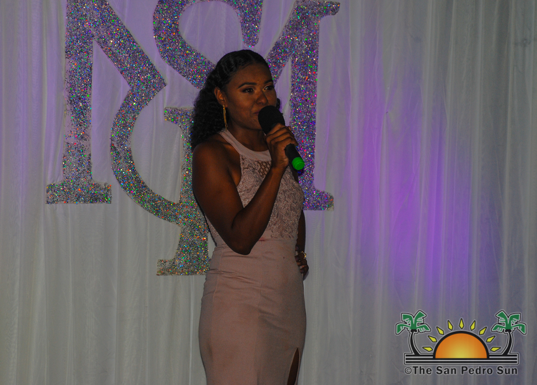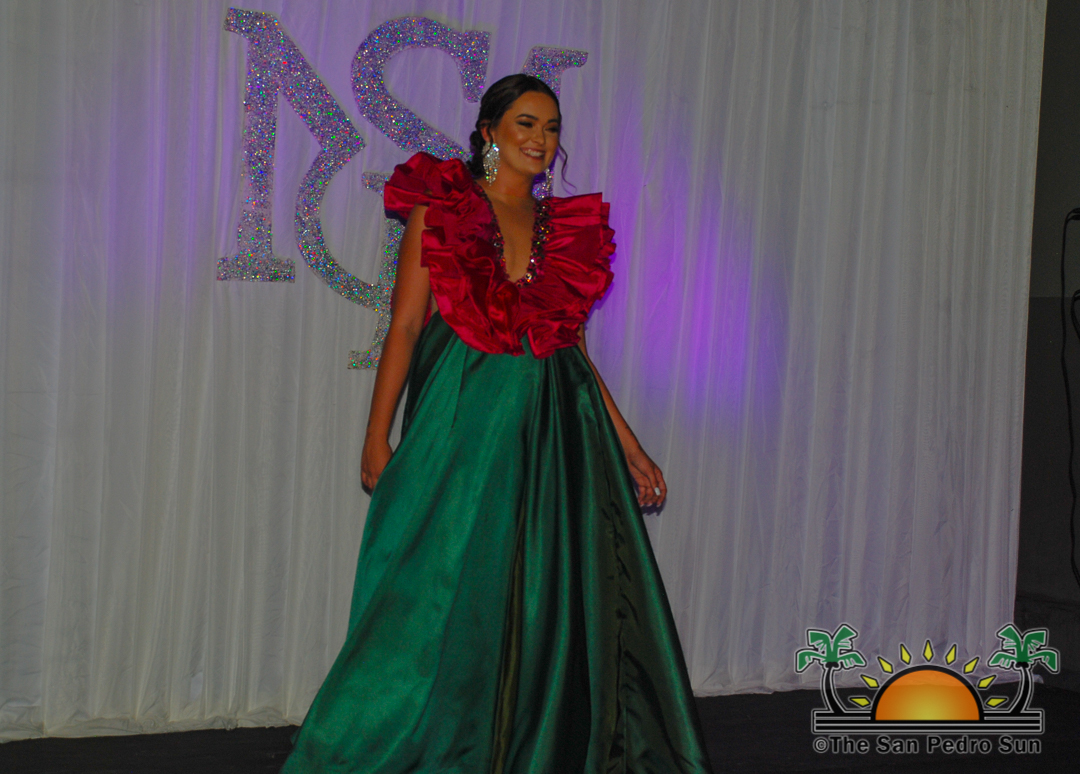 The event started just after 7PM, with Master of Ceremonies Gerry Badillo welcoming everyone in attendance. Deputy Mayor Adaly Ayuso warmly greeted everyone and commended the four young ladies for taking the challenge to become the island’s next beauty ambassador. Afterward, the show started, and each one of the girls took to the stage, modelling beautiful outfits designed by Belizean fashion designer Cesar Funez. Later in the event, the delegates had the opportunity to introduce themselves to the audience.