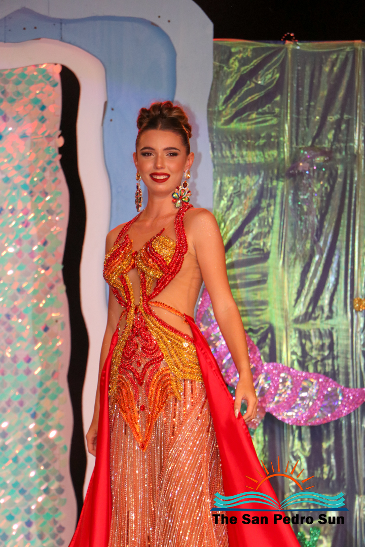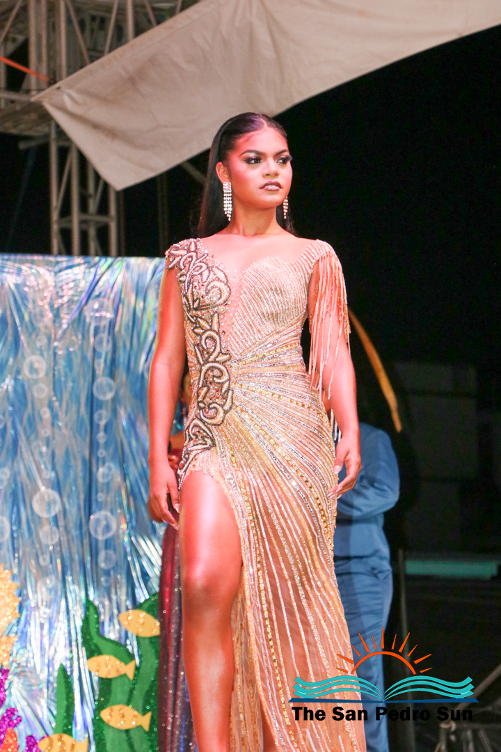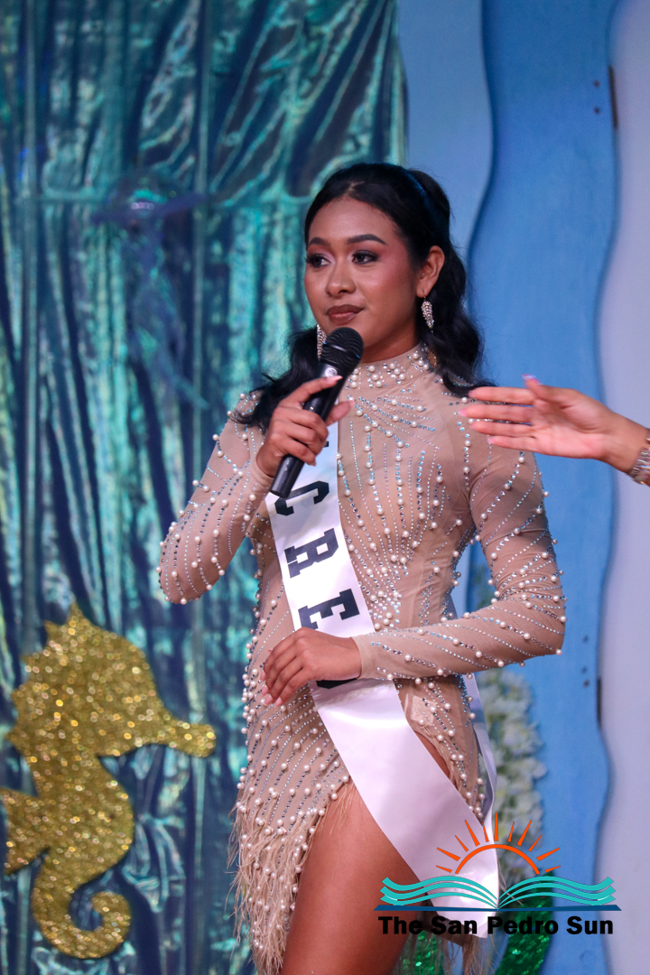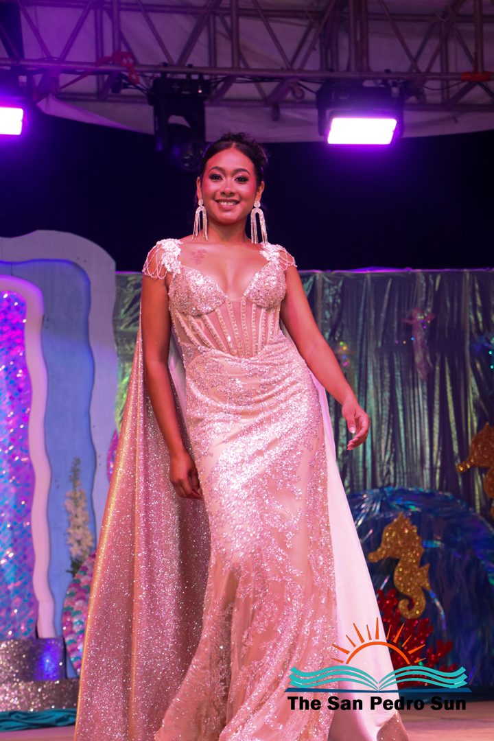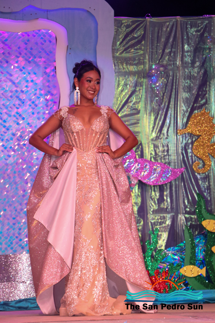 In the costume segment, each contestant showcased elaborate designs inspired by the sea. Chi, sponsored by Ramon’s Village Resort, portrayed the Sea Warrior Goddess. Mas, sponsored by ACRED, represented the Ocean; Neagu, sponsored by Caribeña Enterprises, embodied Creatures of the Sea; Rubio, sponsored by Castillo’s Hardware, highlighted the Coral Reefs; and Sho, sponsored by Re/Max, emphasized the importance of Coastal Waters.