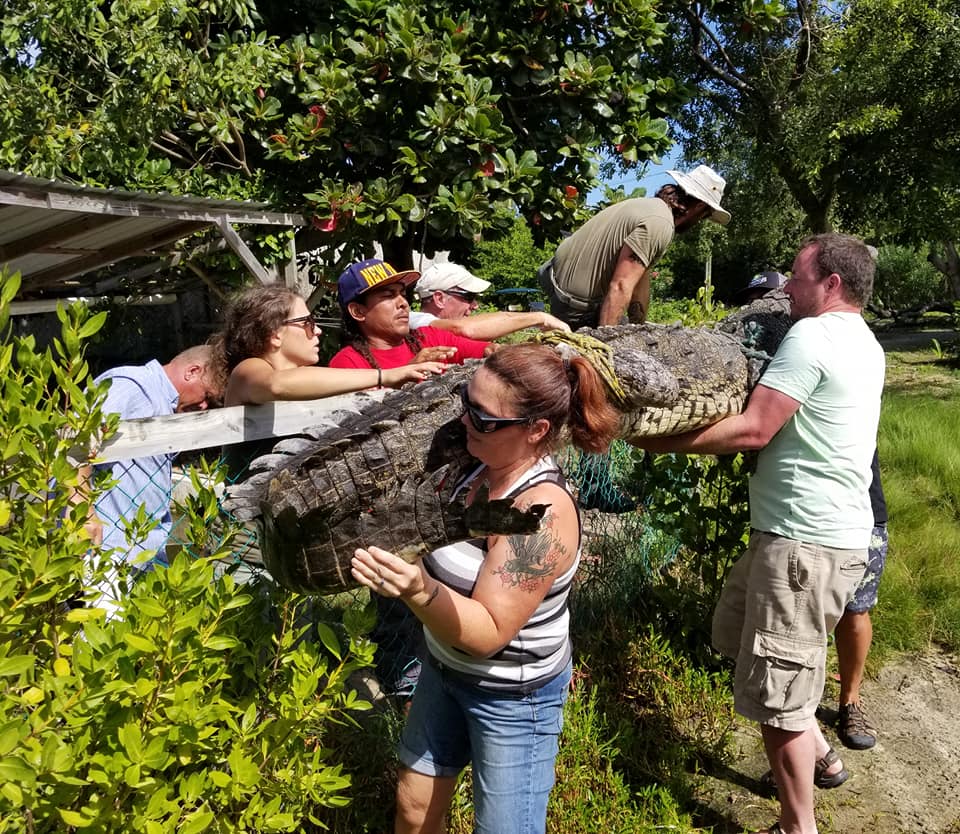 An old 10.5-foot American crocodile named Julio was transported to Sandhill on the mainland of Belize on Wednesday, February 14th, where his beautiful and lush pen in the sanctuary at Rainforest Adventure Zone awaited his arrival. American Crocodile Education Sanctuary (ACES) has given this crocodile many chances over the years, but unfortunately, even after interventions, he continued to express worrisome and problematic behavior, leading ACES to make the decision to remove him from the wild for the safety of the community, as well as for his own safety.