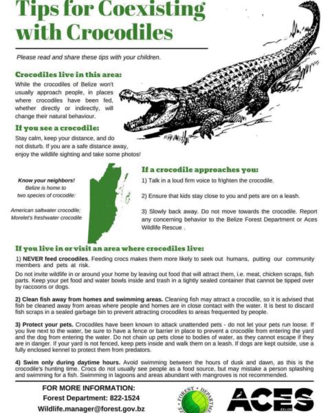 ACES has been actively addressing issues related to crocodile safety for many years. They have focused on educating the community about safe practices and the importance of not feeding crocodiles, which can lead to dangerous habituation. “Our crocs in Belize are shy and avoid people, unlike other more aggressive species in the world. They Do Not naturally view humans as prey. The Aces volunteers are here to assist and support our neighbors and the wildlife we find in our community. When you have questions or concerns about wildlife, please call or message us directly so we can assess and assist. Parents and community members, please take the time to educate your children to be mindful of their environment and respectful of the wildlife that still exists around us— harassing a crocodile by throwing rocks, etc., can injure an animal and will make our job more difficult in trying to secure the croc safely,” says ACES.