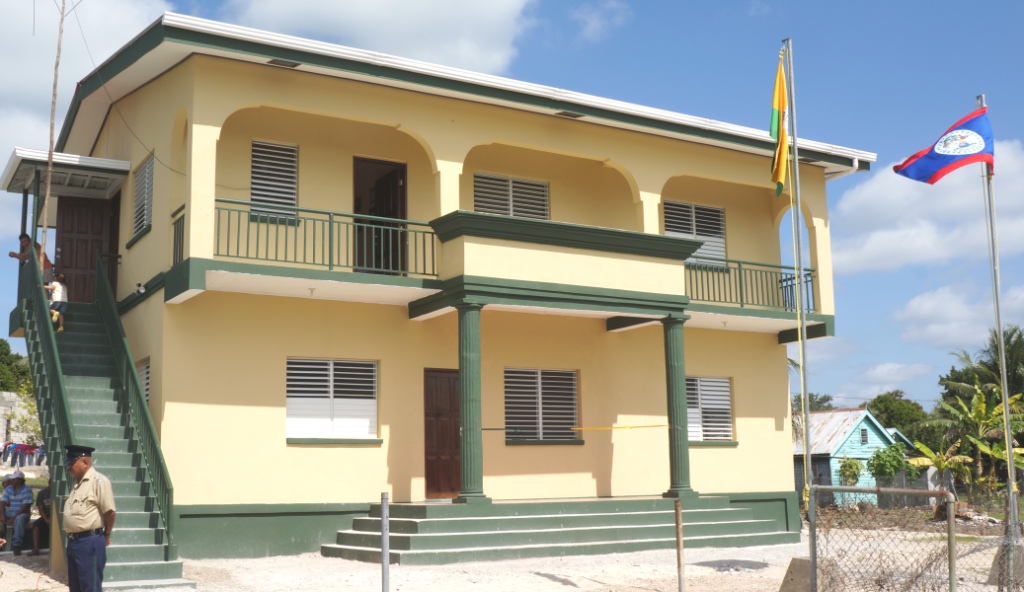 Financed by the Government of Belize, the building was constructed within six months at a cost of $285,000. The top floor is living quarters for the Officer in Charge and his family, while the ground floor houses a public area, offices for the Police, a cafeteria, dorms for Police officers, and a cell block.