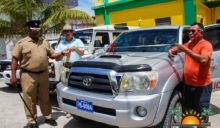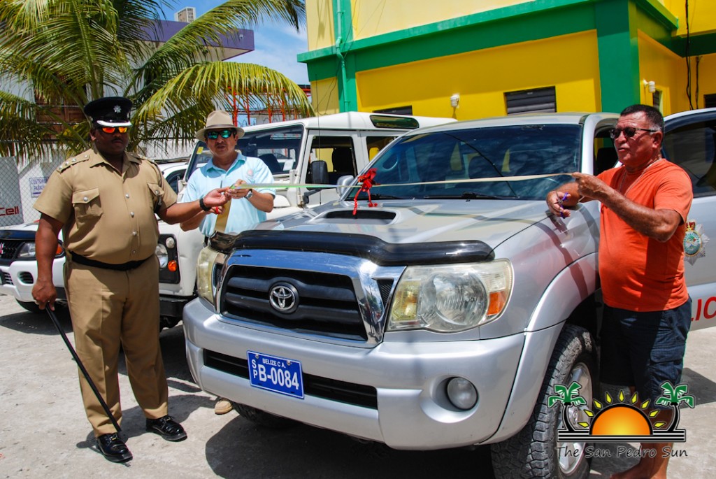 A Toyota Tacoma pickup, a Sports Utility Vehicle (SUV), a Land Rover and two Carryalls were handed over to the San Pedro Police Department on Thursday, June 11th. The donation was made by the San Pedro Town Council (SPTC) and Area Representative and Minister of Tourism, Civil Aviation and Culture Honorable Manuel Heredia Jr., in an effort to alleviate the department’s lack of vehicles and helping the fight against crime in San Pedro. The short ceremony, which started after 10AM saw the presence of His Worship Mayor Daniel Guerrero, Area Representative Honorable Manuel Heredia Jr., and Officer Commanding Coastal Executive Unit Assistant Superintendent Henry Jemmott, among other invited guests.Vehicle Donations San Pedro Police Department-2