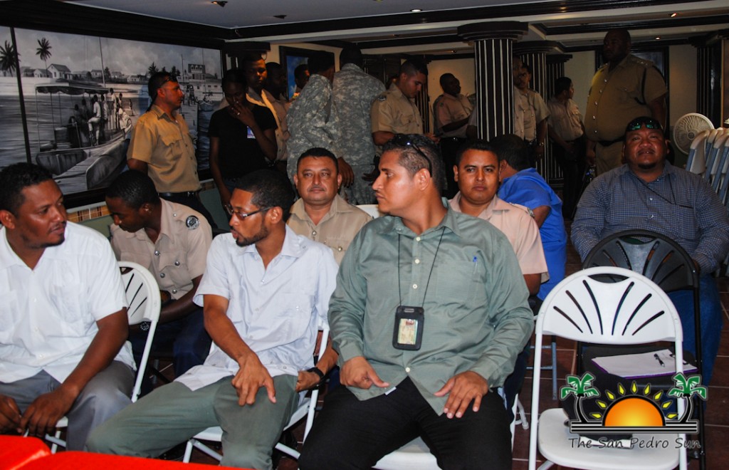 The official ceremonies for the visit were held at the San Pedro Town Council conference room, where the San Pedro police officers were inspected prior to the commencement of the meeting. The short meeting saw addresses from both Saldivar and Whylie, as well as a question and answer segment for the police officers in attendance.
