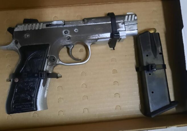 The first search occurred around 9AM on an empty lot in San Pedrito. Police officers discovered a chrome .45 Tangoglio brand firearm with five .45 live rounds of ammunition. One hour later, in the San Juan area, police made checks in an empty lot. After a thorough search, police found a bucket containing one 10 mm Smith & Wesson pistol loaded with ten .9mm live rounds. The search also yielded 57 .223 live rounds and two transparent plastic bags containing 50.9 grams of suspected cocaine.