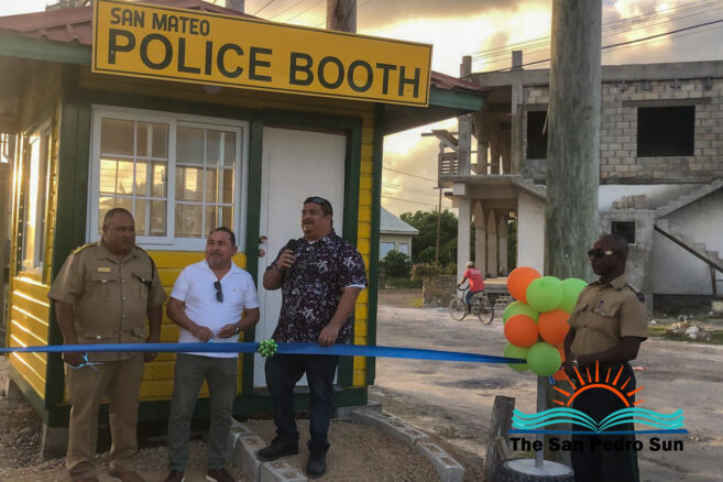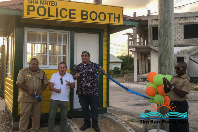 The police presence around the San Mateo subdivision north of San Pedro Town will increase after installing a police booth. On Monday, January 8th, the police booth was inaugurated at the entrance of San Mateo with the presence of local government officials and representatives of the San Pedro Police Formation.