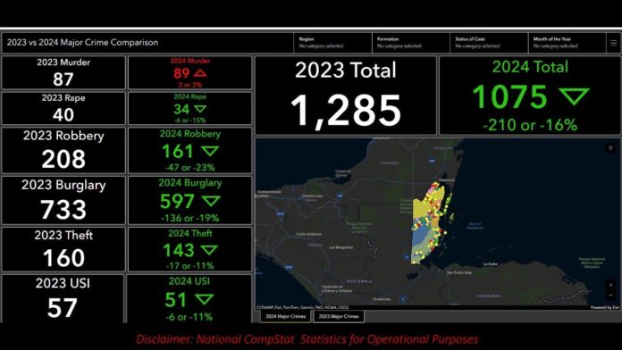 The Belize Police Department has reported a significant decline in major crimes over the past year. However, their end-of-year statistics show a slight increase in the murder rate, rising from 87 in 2023 to 89 in 2024. Despite this uptick, the current murder rate is still a reduction compared to previous years, when rates consistently exceeded three digits.