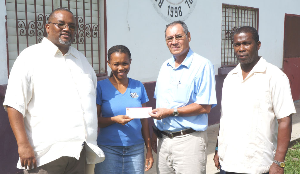 Hon. Saldivar presented the cheque of $3,000 this afternoon to Vice Principal Valentine Diego at the School’s campus on Macal Street in Belmopan City. Accompanying the Minister was Chairman of RECONDEV Rodney Neal and the Corporation’s General Manager Hector Sabido.