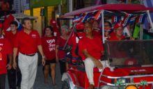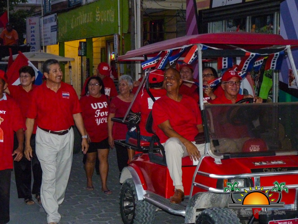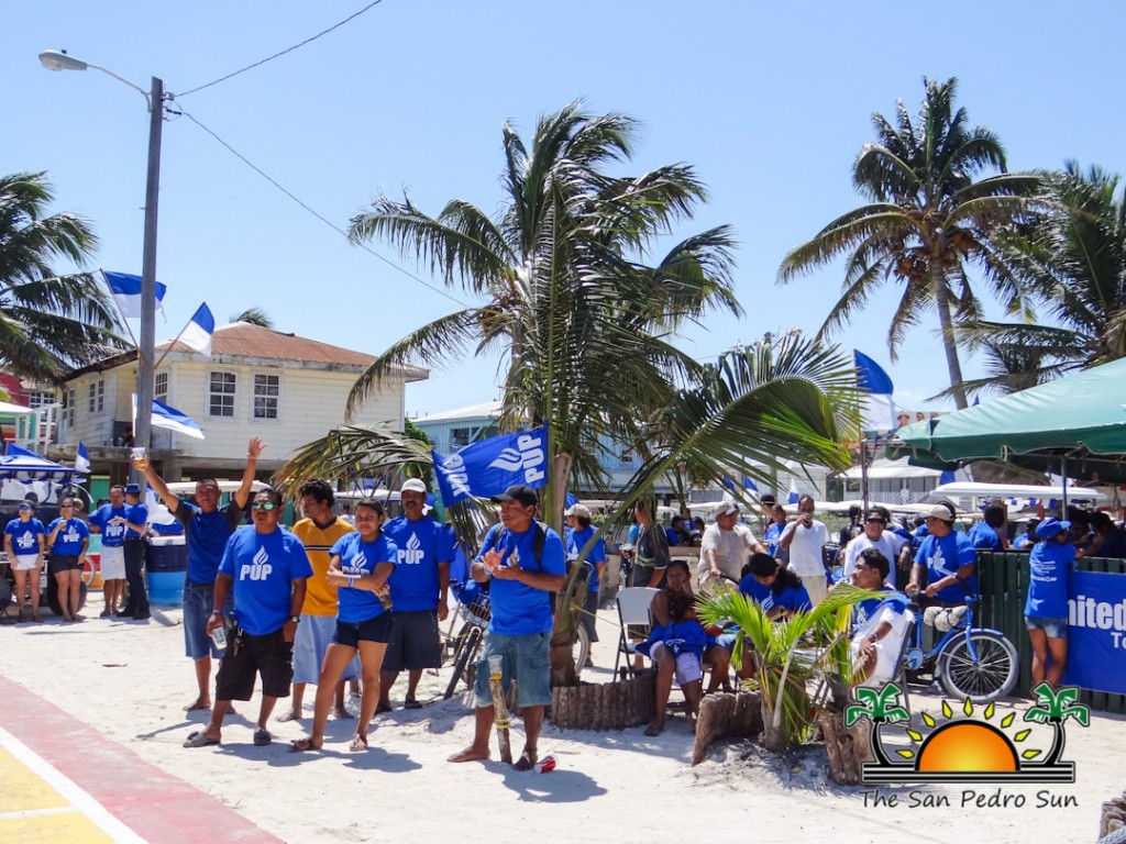 For its part UDP brought in the Prime Minister of Belize Honorable Dean Barrow who was greeted by a large crowd of supporters who had assembled at Maya Island Air. While music blared, the crowd of supporters marched through the streets of San Pedro, jumping up to the beat of their political songs. The parade culminated at the San Pedro Central Park where the rally followed.UDP Pre Election Rally Central Park-7