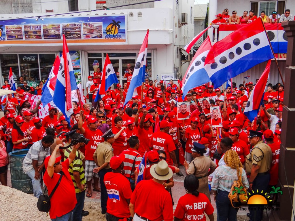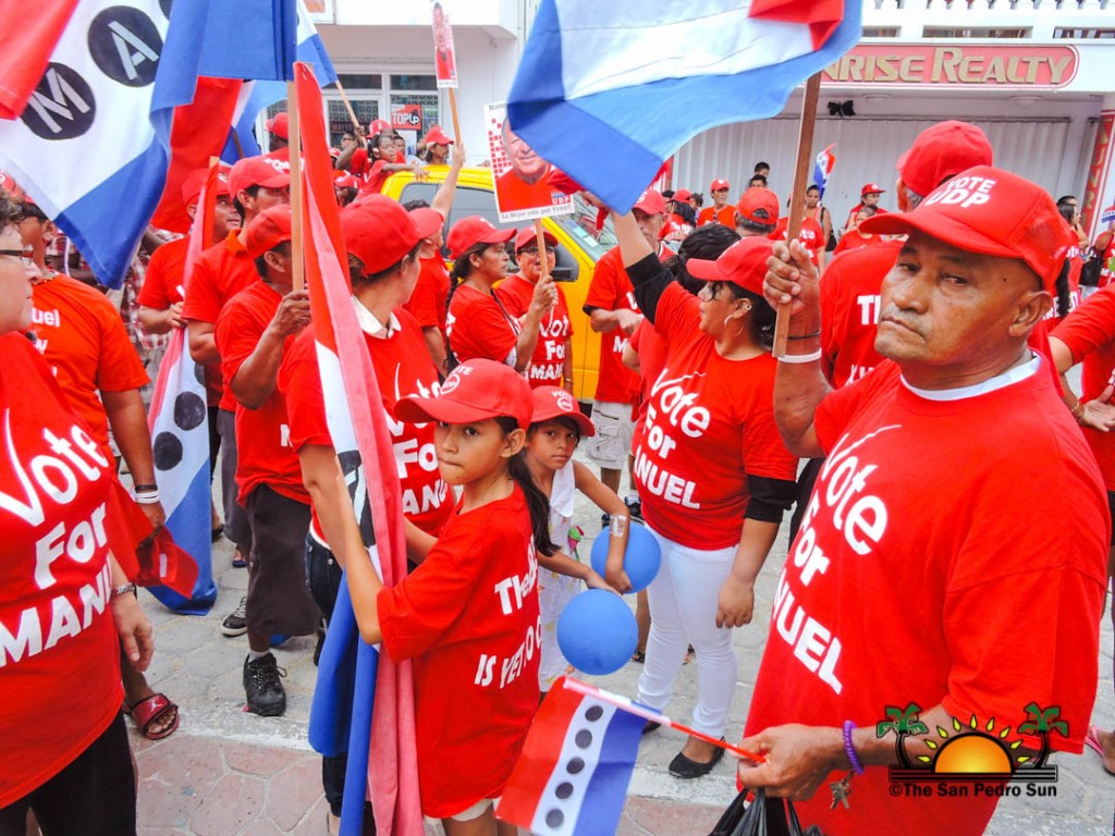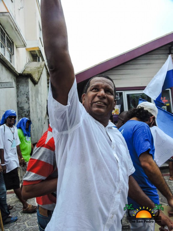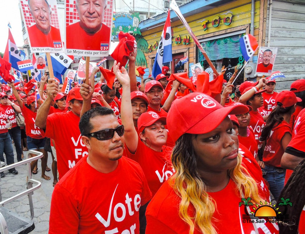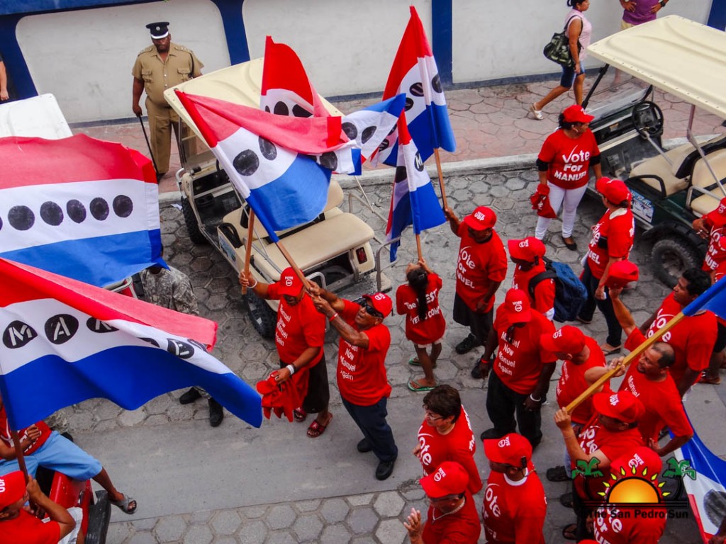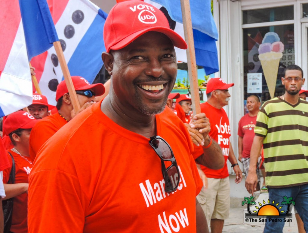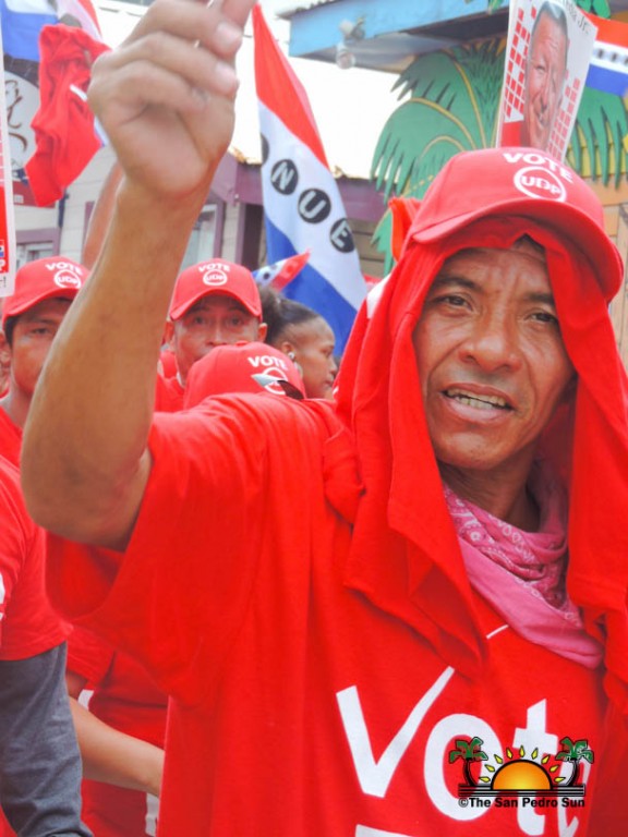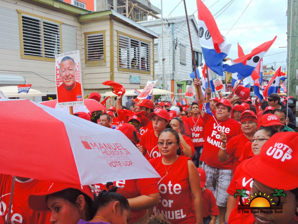 Last to be nominated was the incumbent UDP candidate, Manuel Heredia Jr. He rallied his supporters as they gathered on Barrier Reef Drive to march through the streets of San Pedro. With music playing, party supporters cheered for Heredia. Upon arriving at the SPTC, the crowd of supports gave one more celebratory cheer before Heredia and his nominators made their way inside the building.