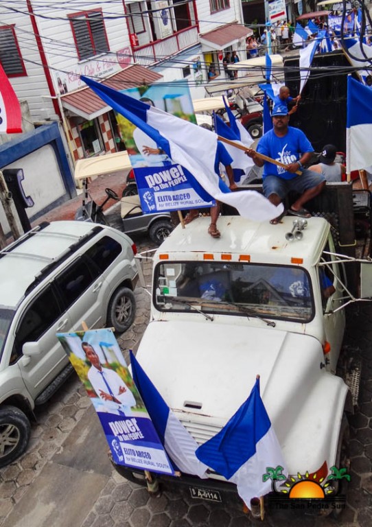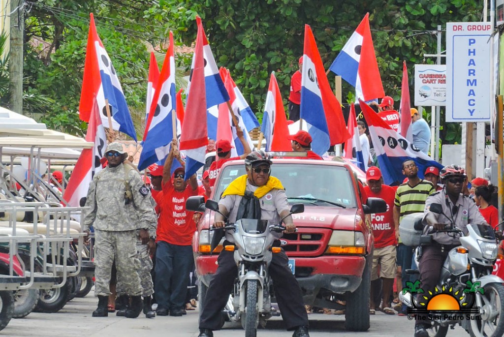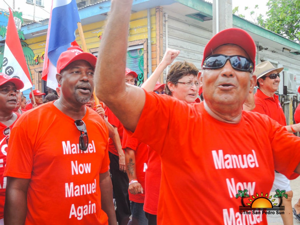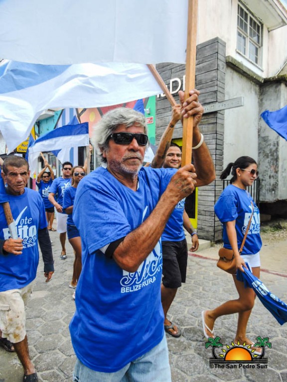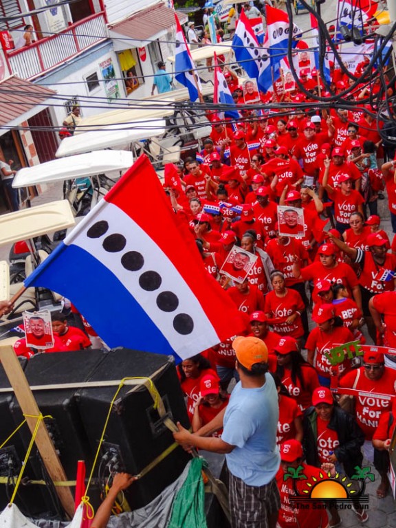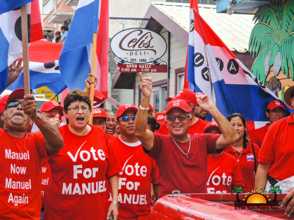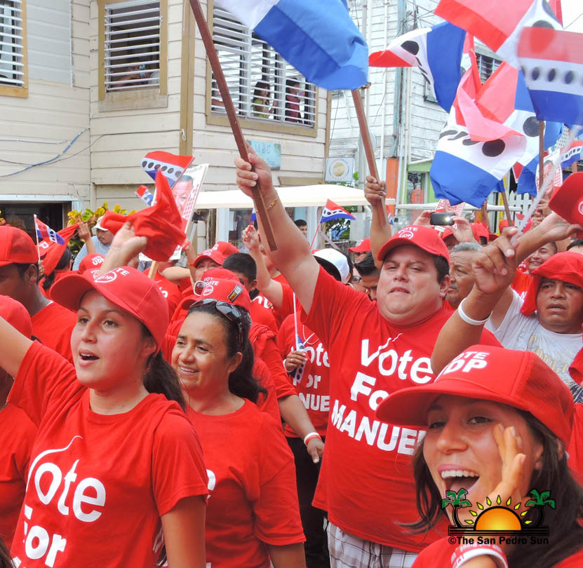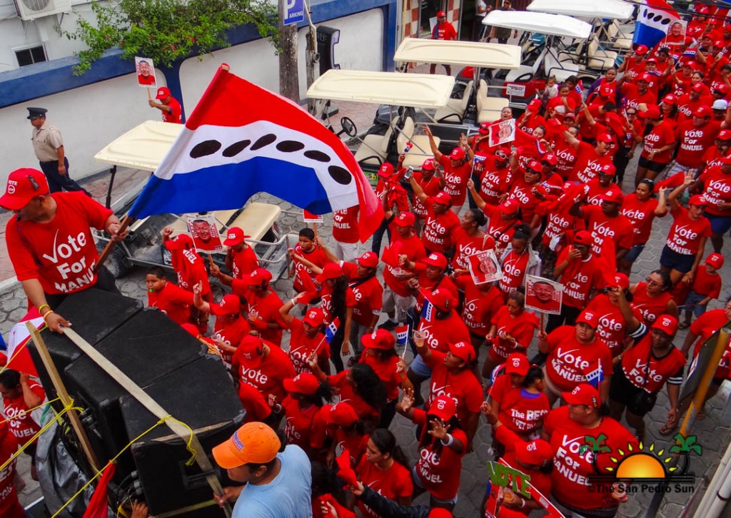 Last to be nominated was the incumbent UDP candidate, Manuel Heredia Jr. He rallied his supporters as they gathered on Barrier Reef Drive to march through the streets of San Pedro. With music playing, party supporters cheered for Heredia. Upon arriving at the SPTC, the crowd of supports gave one more celebratory cheer before Heredia and his nominators made their way inside the building.