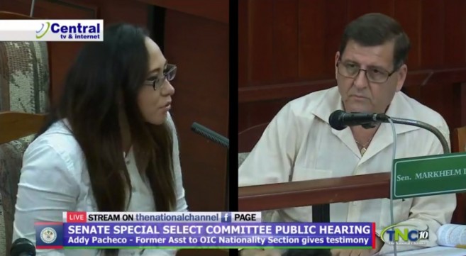 Chairman of the Senate Select Committee, Honorable Aldo Salazar challenged Pacheco on why she didn’t closely inspect the files she accepted as a frontline immigration officer. She responded that it was not her duty to spot fraudulent documents being submitted as part of applications for visas and nationalities. After Senators asked her to explain why she didn’t see that as part of her responsibility, she revealed the shocking truth, that no one at the Immigration Department did any kind of verification of whether documents were authentic or not.