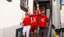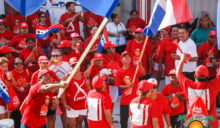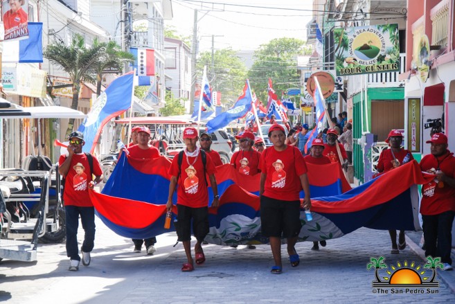 The UDP slate started their nomination parade later in the afternoon at around 1PM, beginning at the UDP headquarters on Barrier Reef Drive. The crowd of supporters dressed in red made their way across town core ending at the SPTC. Twice elected Mayor Daniel Guerrero led his councilor slate comprised of Gary Grief, Hector Alamilla, Ruben Gonzalez, Severo Guerrero Jr., Gabriel Nuñez, and Flora Ancona, who are all hoping for re-election.