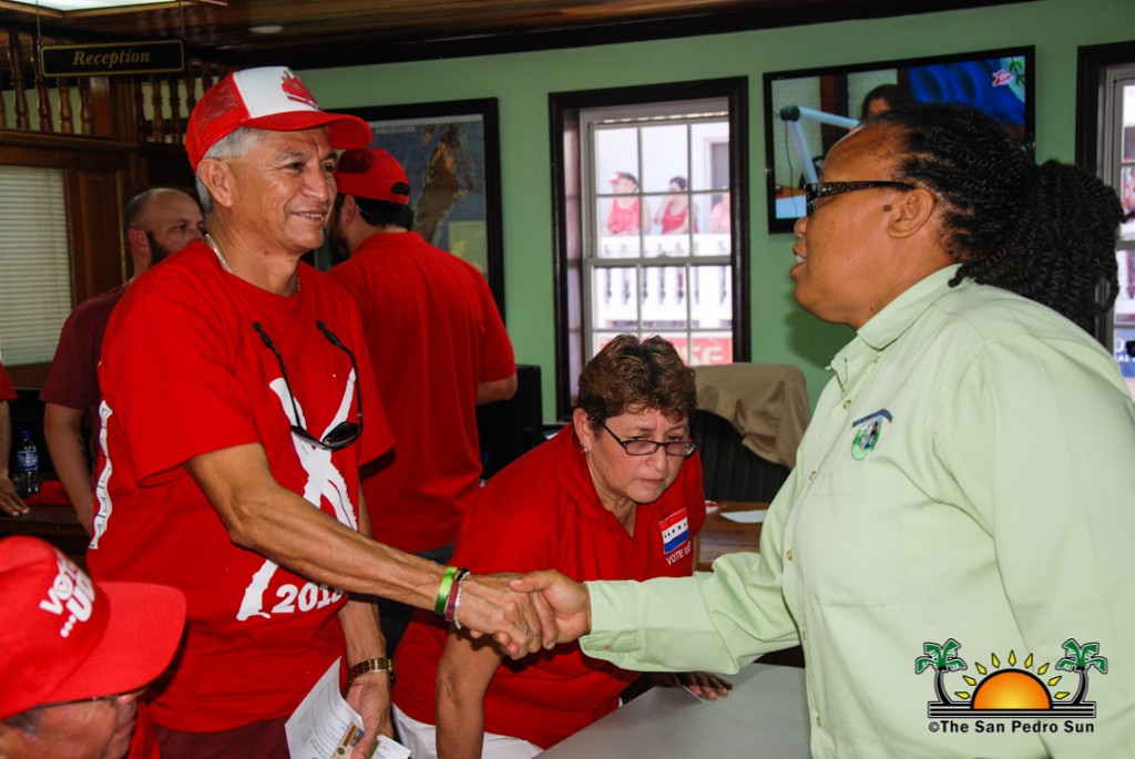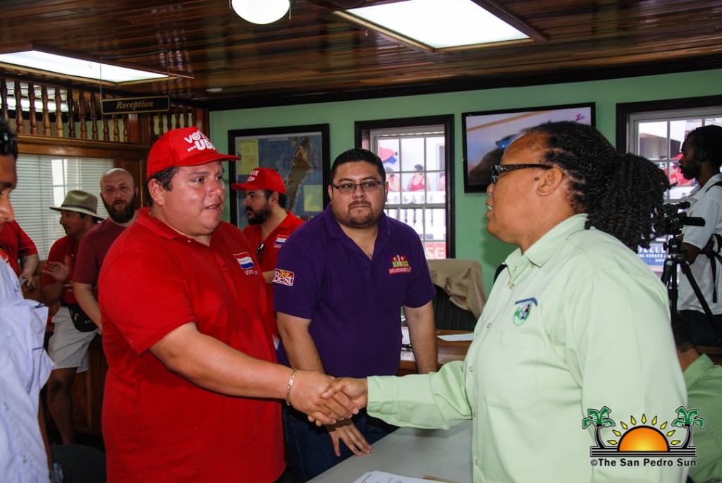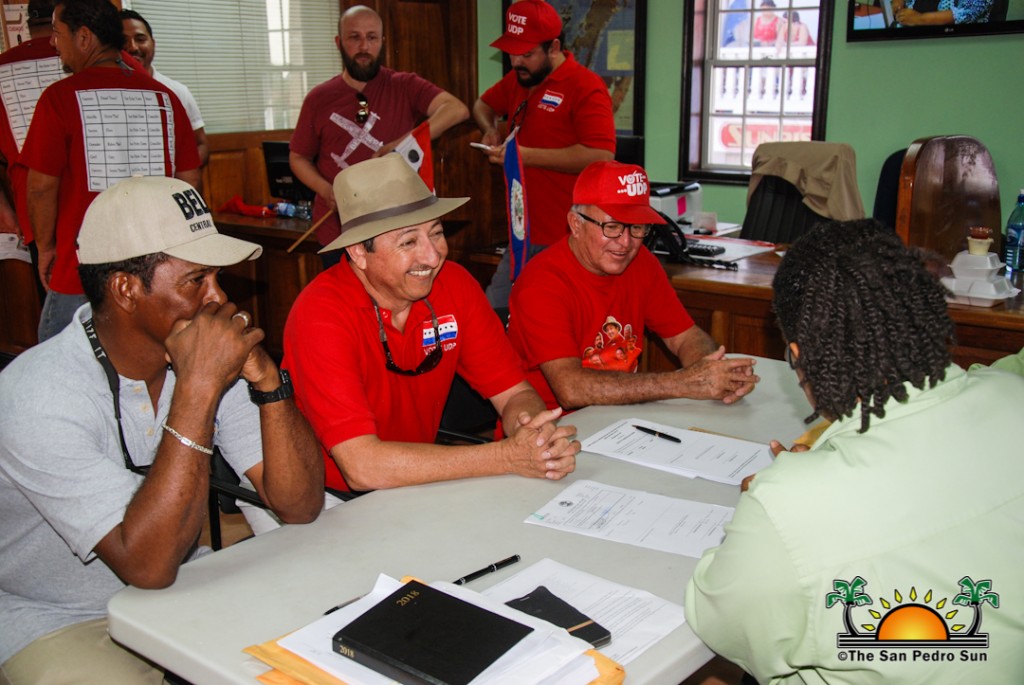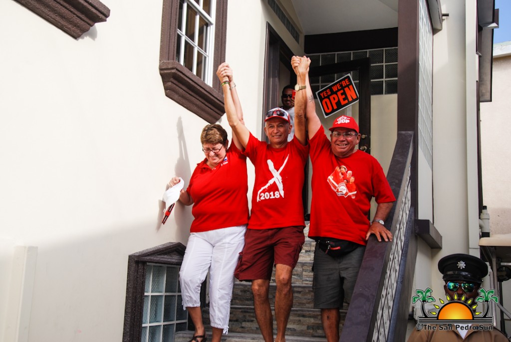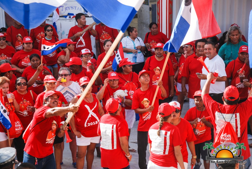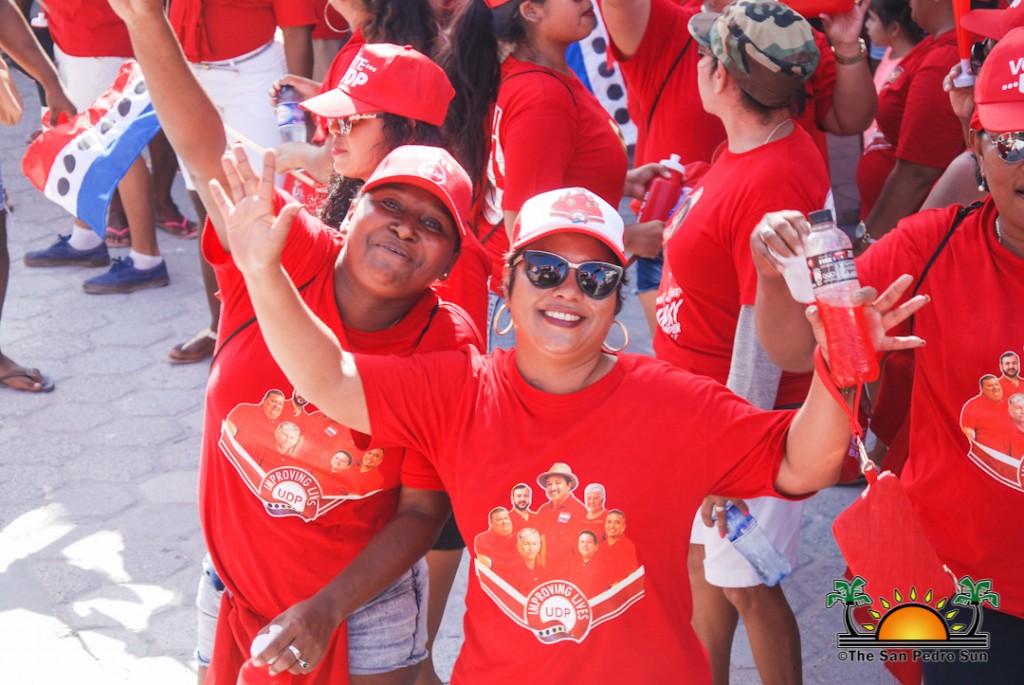 The UDP slate started their nomination parade later in the afternoon at around 1PM, beginning at the UDP headquarters on Barrier Reef Drive. The crowd of supporters dressed in red made their way across town core ending at the SPTC. Twice elected Mayor Daniel Guerrero led his councilor slate comprised of Gary Grief, Hector Alamilla, Ruben Gonzalez, Severo Guerrero Jr., Gabriel Nuñez, and Flora Ancona, who are all hoping for re-election.