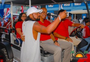 UDP supporters headed to the Maya Island Air terminal to await the Prime Minister’s arrival around 5PM on Saturday, wearing the party’s signature red shirts and proudly waving their UDP flags. When the plane transporting Barrow touched down, newly elected UDP Mayor Daniel Guerrero along with Area Representative and Minister of Tourism and Civil Aviation, Honourable Manuel Heredia Jr., greeted him. Barrow approached the welcoming crowd, waving, hugging and even taking selfies with his supporters. A parade then followed through the main streets of downtown San Pedro, ending at the rally’s assigned venue.