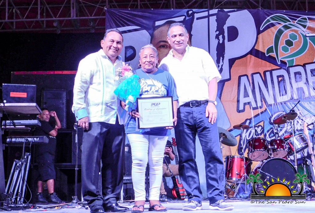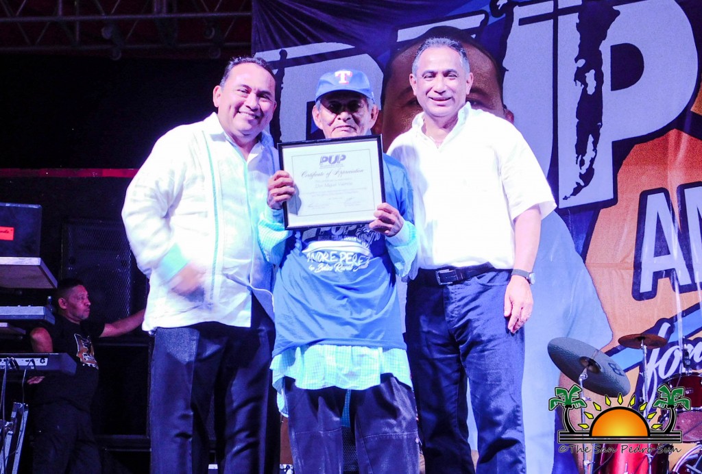 After that Angel Nuñez took the stage to give an official goodbye to José Milo Paz, who was a great supporter of the PUP and is believed to have passed away some days ago in a plane crash. Perez and PUP party leader Johnny Briceño then issued certificates of appreciation to the residence of both San Pedro Town and Caye Caulker, for their loyal support to PUP for many years.