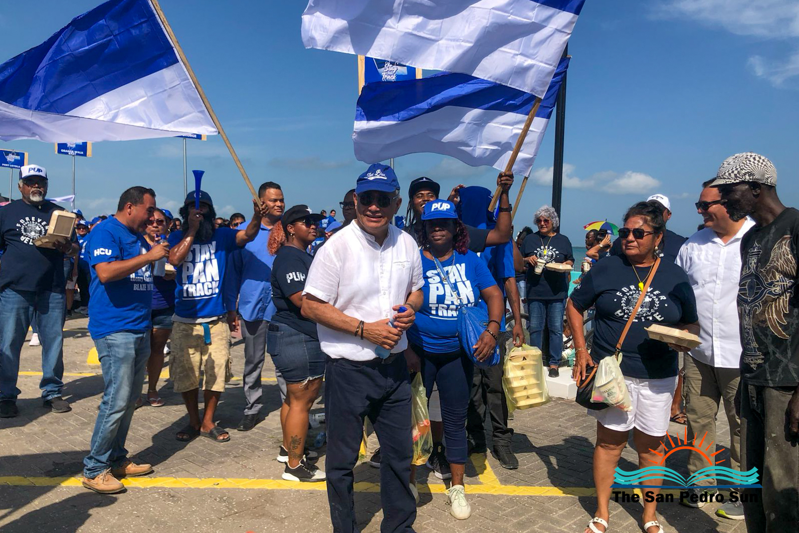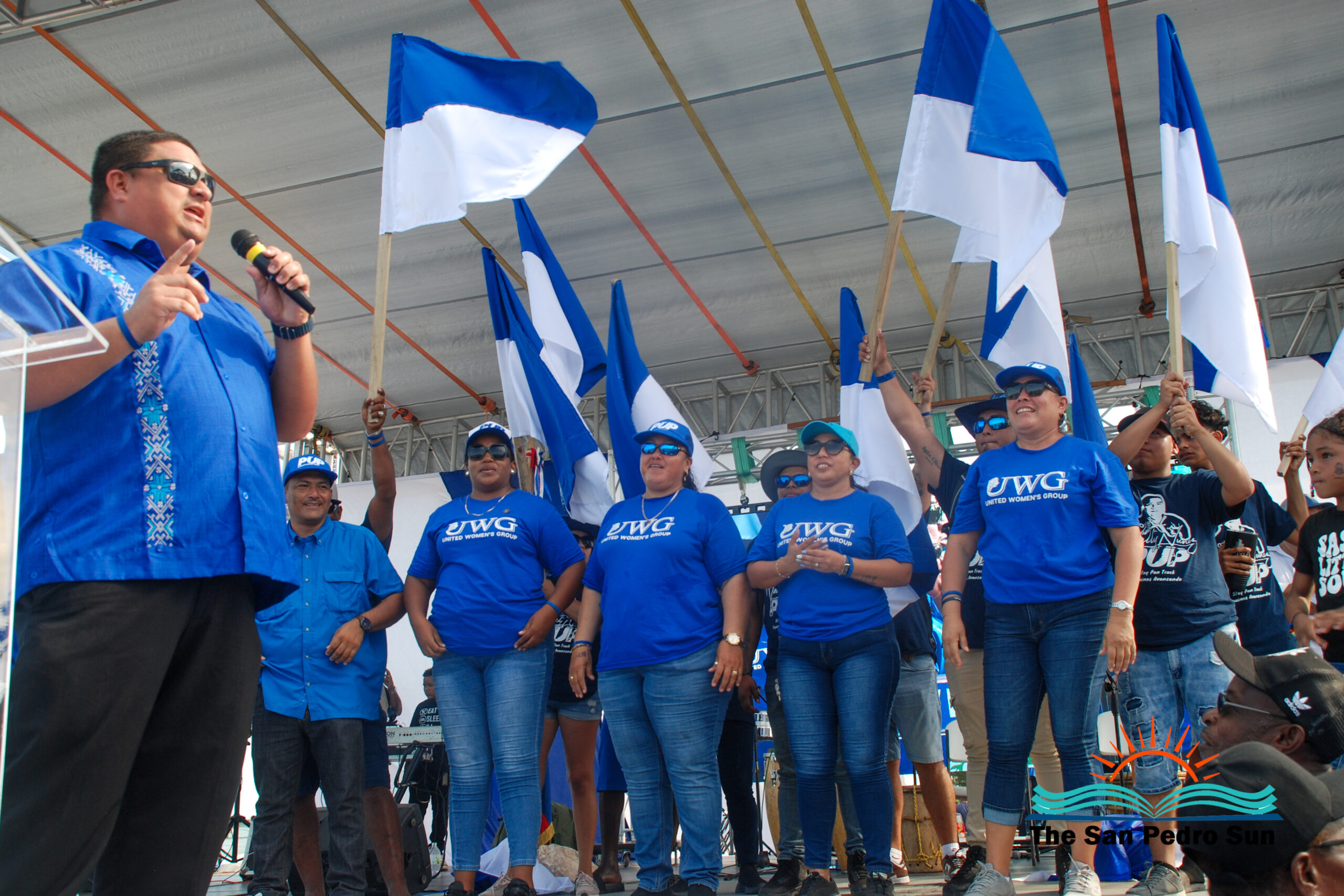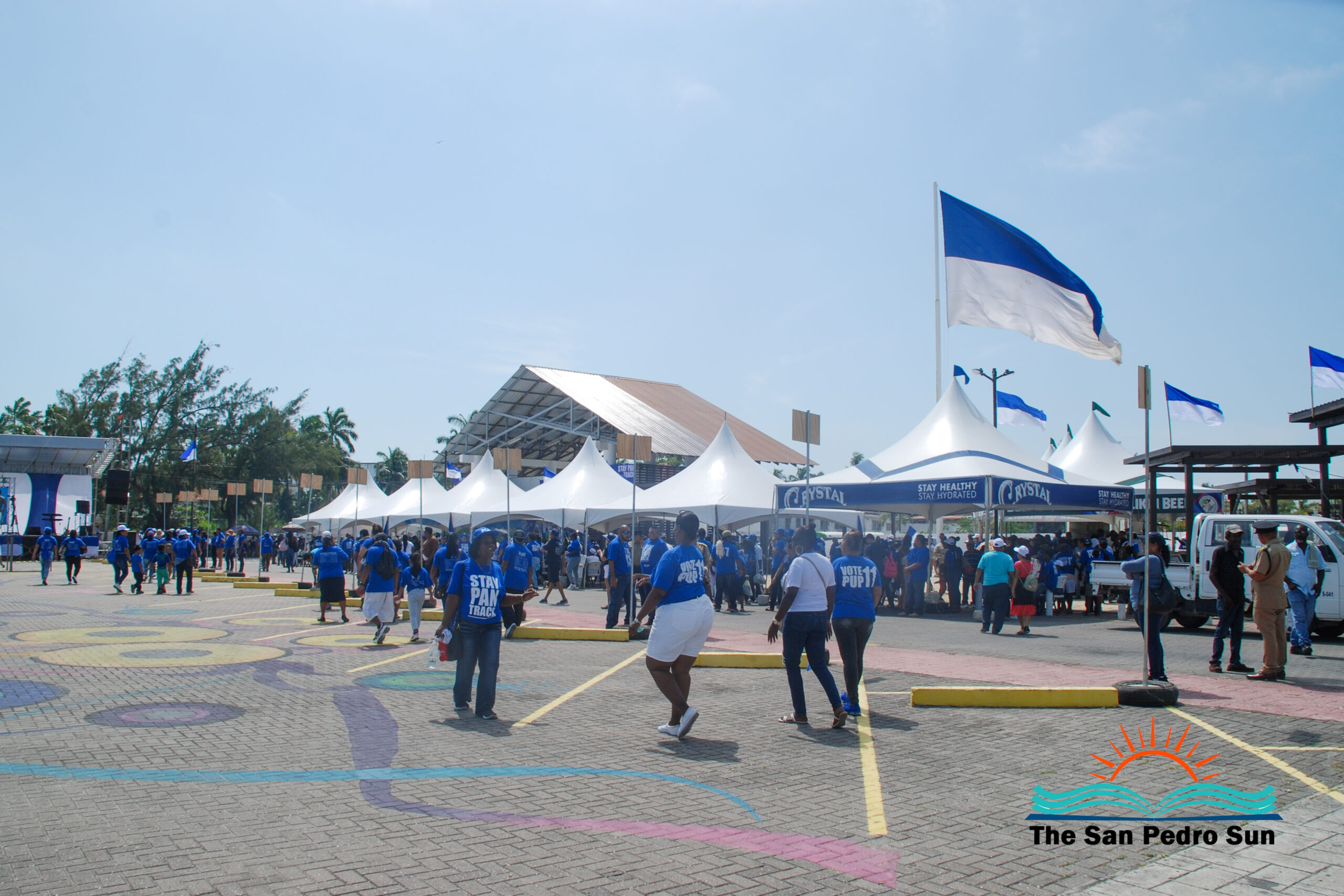 Activities started shortly after 1PM, and the Master of Ceremonies Party Chairman, Honourable Henry Charles Usher, welcomed everyone. After Prime Minister Honorable Dr. John Briceño arrived, the different PUP slates for the next municipal elections were introduced. The first one called to the stage was the Corozal Town Council slate led by Mayor Rigo Vellos. Belmopan followed Orange Walk and then the twin town slate of San Ignacio and Santa Elena. Next was San Pedro, when Mayor Gualberto’ Wally’ Nuñez firmly spoke of the PUP achievements on the island town. He introduced each of his Councillor candidates to the large crowd. Jose Castellanos, Dianeli Aranda, Marina Kay, Jhonnia Duarte, and Adaly Ayuso waved to the crowd, accepting the challenge to seek victory on election day. One of the Councillor candidates, Ernesto Bardalez, was not present due to an illness but was also mentioned. Before stepping off the stage, Mayor Nuñez called on everyone to keep supporting the PUP local governments and give them another opportunity to serve on March 6th.