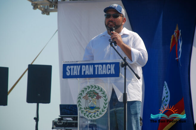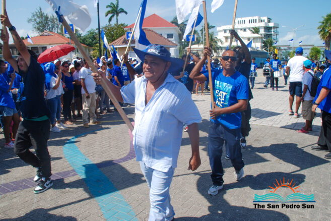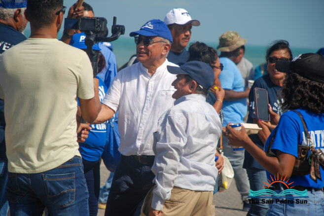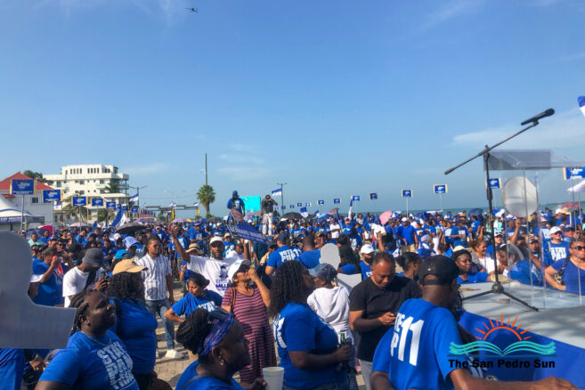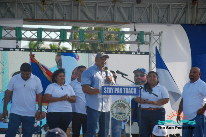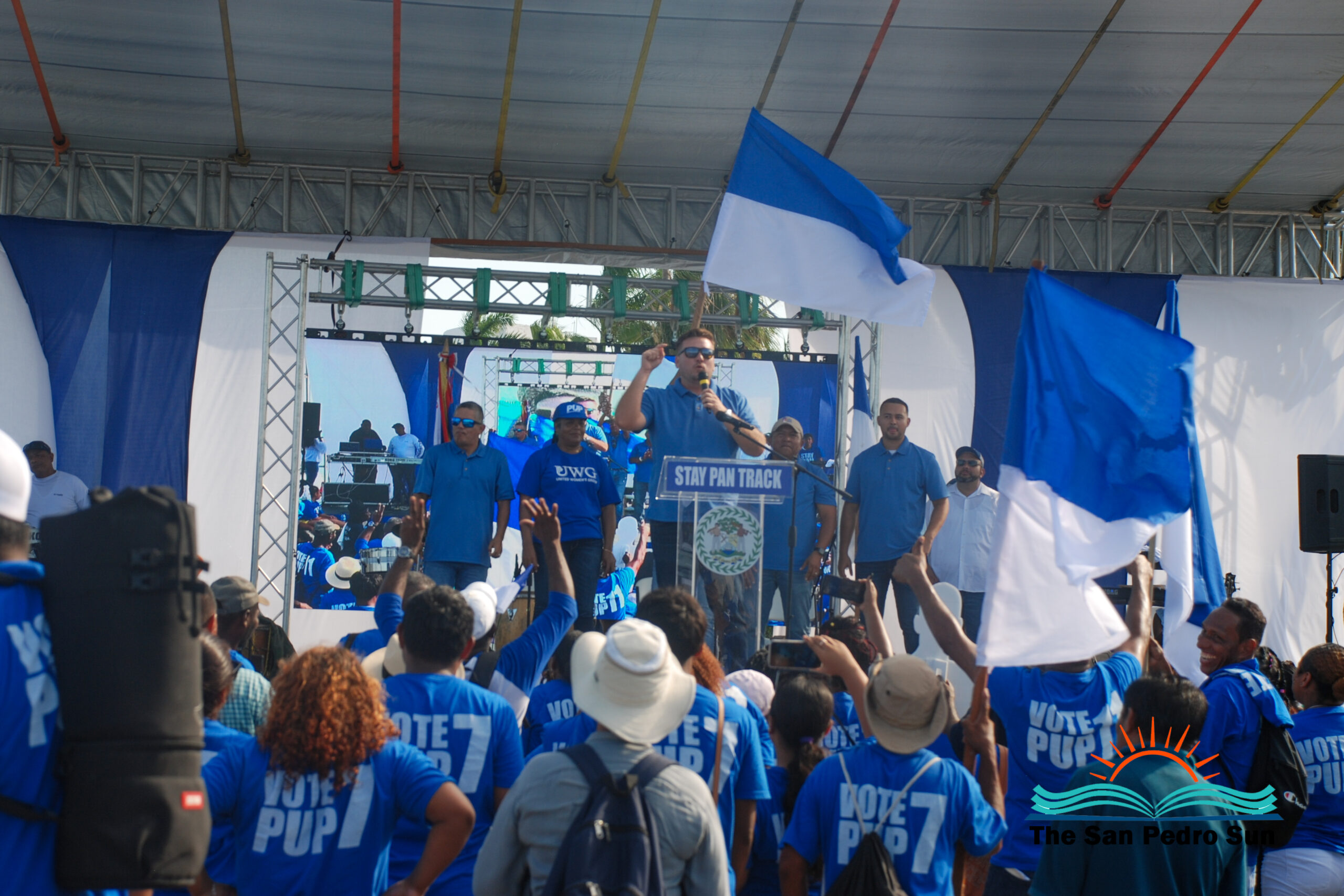 Activities started shortly after 1PM, and the Master of Ceremonies Party Chairman, Honourable Henry Charles Usher, welcomed everyone. After Prime Minister Honorable Dr. John Briceño arrived, the different PUP slates for the next municipal elections were introduced. The first one called to the stage was the Corozal Town Council slate led by Mayor Rigo Vellos. Belmopan followed Orange Walk and then the twin town slate of San Ignacio and Santa Elena. Next was San Pedro, when Mayor Gualberto’ Wally’ Nuñez firmly spoke of the PUP achievements on the island town. He introduced each of his Councillor candidates to the large crowd. Jose Castellanos, Dianeli Aranda, Marina Kay, Jhonnia Duarte, and Adaly Ayuso waved to the crowd, accepting the challenge to seek victory on election day. One of the Councillor candidates, Ernesto Bardalez, was not present due to an illness but was also mentioned. Before stepping off the stage, Mayor Nuñez called on everyone to keep supporting the PUP local governments and give them another opportunity to serve on March 6th.