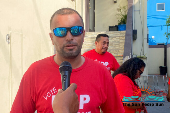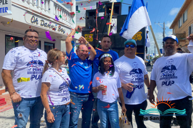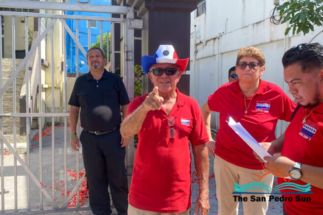 At around 10:30 AM, the PUP was the first to arrive at the San Pedro Town Council (SPTC) for Nomination Day. Their candidate, Andre Perez, was nominated by the required six registered voters from BRS. Accompanied by supporters waving banners, Perez, along with his nominators—Mary Rodriguez, Mayor Gualberto “Wally” Nuñez, Juana Julia Martinez, Carlos Barrientos, Porfirio Gusman, and Ahmad Harmouch—entered the SPTC building.
