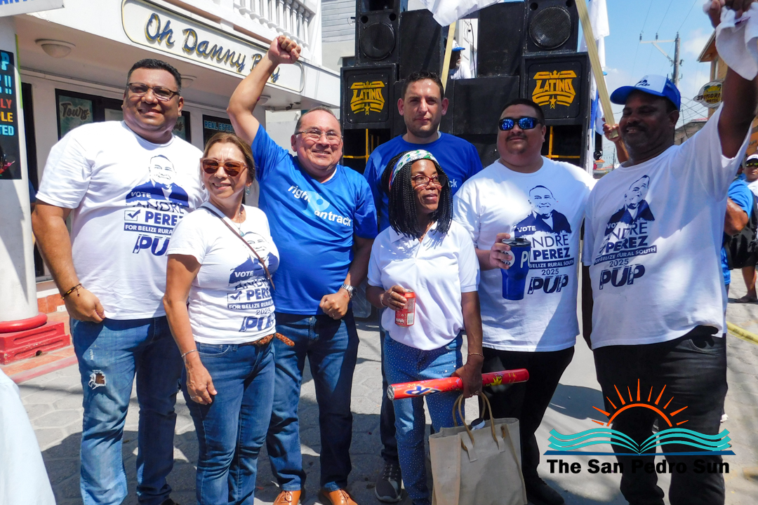 At around 10:30 AM, the PUP was the first to arrive at the San Pedro Town Council (SPTC) for Nomination Day. Their candidate, Andre Perez, was nominated by the required six registered voters from BRS. Accompanied by supporters waving banners, Perez, along with his nominators—Mary Rodriguez, Mayor Gualberto “Wally” Nuñez, Juana Julia Martinez, Carlos Barrientos, Porfirio Gusman, and Ahmad Harmouch—entered the SPTC building.