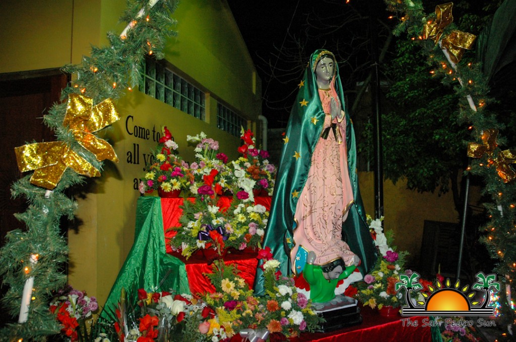On Ambergris Caye, where the predominant religion is Roman Catholic, the local church organized an event with indoor and outdoor activities. Following the official mass held, outside at the entrance of the church, a large altar was erected to allow believers to render candles, flower and even food to the Virgin of Our Lady of Guadalupe. During the course of the night, local singers including several musical groups gathered to serenade the Virgin. At midnight, the traditional serenade of “Las Mañanitas” was sung while firecrackers blasted in the background, signaling her birthday’s arrival.