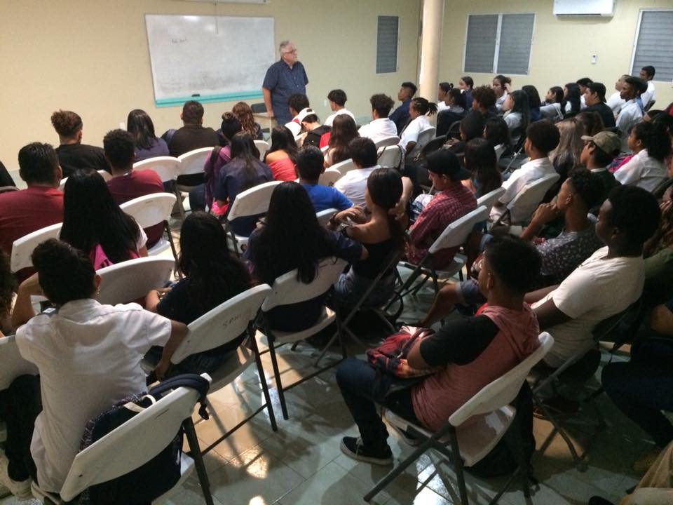 The team spoke at San Pedro Roman Catholic School, San Pedro High School, San Pedro Adult Continuing Education, Holy Cross Anglican School, and San Pedro Junior College. They also visited other schools on the mainland, including Eden Seventh Day Adventist School, Belmopan Baptist Adult Education, Belmopan Comprehensive HS Assembly, Independence High School, Georgetown Technical High School, Julian Cho Technical High School, and Toledo Community College.