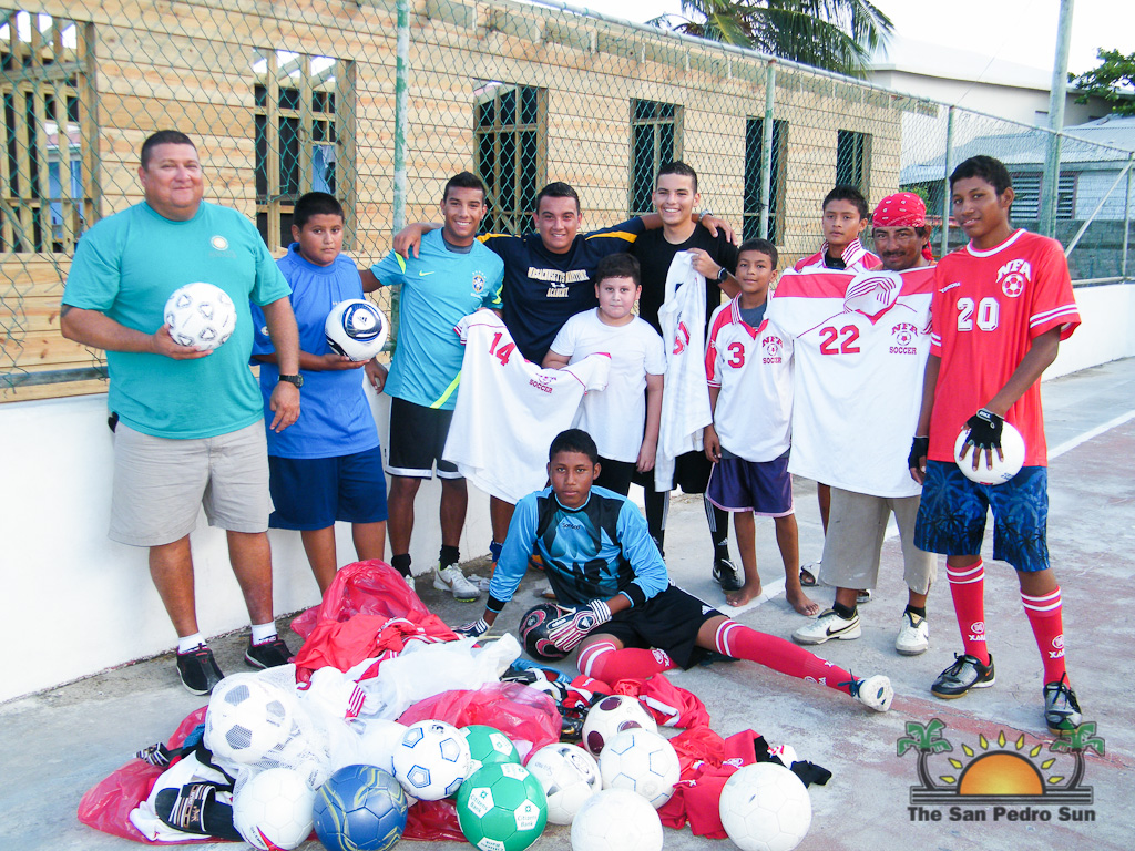 This is not the first time Timothy has donated sporting equipment to the island; in fact, when speaking with The San Pedro Sun he said that he’s been doing so for some years now whenever he comes down on vacation to visit his family and friends in San Pedro. Timothy plays football for the Norwich Free Academy Soccer Team in Connecticut, USA, and says that every couple of years his school gets brand new uniforms and equipment for their sports teams. He decided to ask his coach, Robert Briones, if he could bring down some of the equipment from previous seasons and donate them to the kids here on the island. He also got some of his friends and teammates in the U.S., who have seen what he’s been doing to help donate equipment here in Belize, to donate some stuff of their own and add to the number of items he could provide.