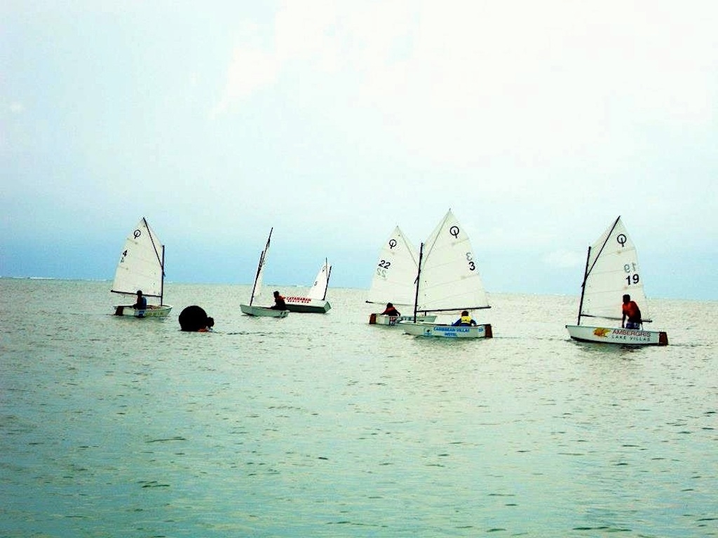 Two groups raced 2 one-lap races each. The top finishers then competed in the 2-race final. Stephanie Keating sailing Ambergris Lake Villas whose scores had tied for first in her two preliminary heats, went on to win the day by taking 1st and 2nd in the final races. The next best combined score gave Kevin Velasquez in Caribbean Villas and Jorge Oliveres in Palo Alto a 2nd place tie. The scores of Jerdon Anderson, sailing Catamaran Bar gave him 3rd place.