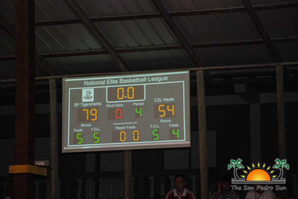 San Pedro Tigersharks VS Corozal Heats-2The Heats opened the scoreboard when Jason Grant caught the first basket of the match, giving the visiting team an early two-point lead. The Tigerharks’ Tyron Edwards responded with a three-point shot putting the home team up by one point. In the 53rd second of the game, the Heats’ Geovani Lennon caught a 2-point-basket, putting Corozal up by one. And that was the only time the Heats had the lead as the Tigersharks swam off with the points leaving the Corozal Heats sinking in their wake. Winston Pratt and Tyron Edwards, Tigersharks’ top shooters managed to capitalize on several rebounds and turnovers and by the time the first quarter ended, the home team were up against the Heats by a score of 20 to 12. The spectators were not too happy when the home team missed many free throws. But despite the misplays, Tigersharks kept a comfortable nine-point lead over the Heats with a score of 33 to 24 at the end of the first half.