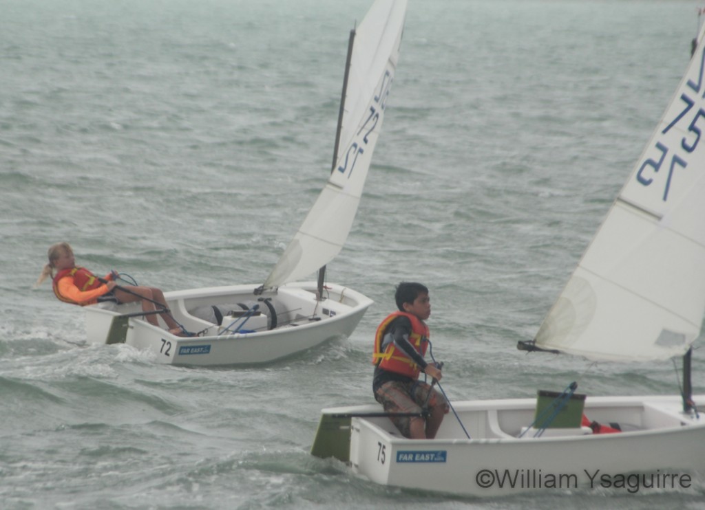 The Optimist race was divided into two categories: the green fleet for the beginners and white fleet for the advanced sailors. SPR’s 13-year-old Kevin Velasquez won the championship for the Optimist White fleet, placing 1st with a final score of 8pts. 12-year-old Trent Hardwick of BSS was 2nd with 16pts, while 14-year-old Antonio Ricardez Jr from the BCSC took 3rd place. SPJSC’s 14-year-old Blanca Velasquez, who was voted Best Sailor of 2014, was 4th with 28 pts. In 5th was SPR’s 13-year-old Mitchell Sersland. 11-year-old Peter Joo from PSC was 6th with 39pts, SPR’s 10-year-old Caroline Sersland was 7th with 42pts, CCSC’s 13-year-old Ronaldo Bo was 8th with 43pts, SPR’s 13-year-old Christian Lopez was 9th with 45pts, and BCSC’s 13-year-old Nashira Ricardez was 10th with 50pts.