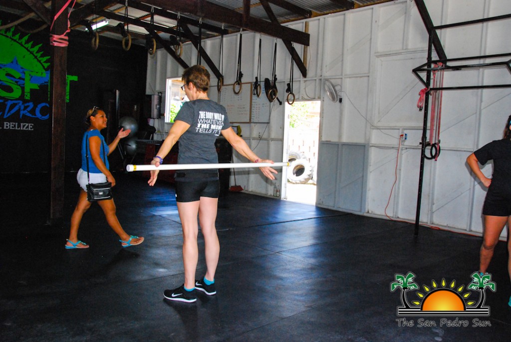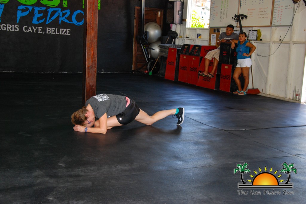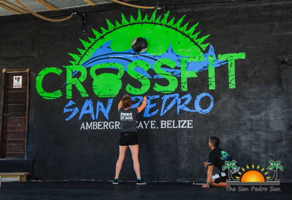 She was on holiday in mainland Belize, but 57-year-old AnnElise Bennett had to find a certified CrossFit box (gym) in the country to take part in the current worldwide challenge known as the CrossFit Open. The Open leads to the official 2015 Reebok CrossFit Games set to take place July 21-26, and will see the world’s top CrossFit Athletes compete for the title of ‘World’s Fittest’. As an official (active) affiliate in Belize, CrossFit San Pedro’s family was happy to welcome AnnElise to the island. Members dropped by to observe and cheer her on as she completed the 14-minute workout. The scaled version of the official 15.3 Open workout consisted of 50 wall ball squats and 200 jump ropes, aiming for as many rounds as possible in 14 minutes.