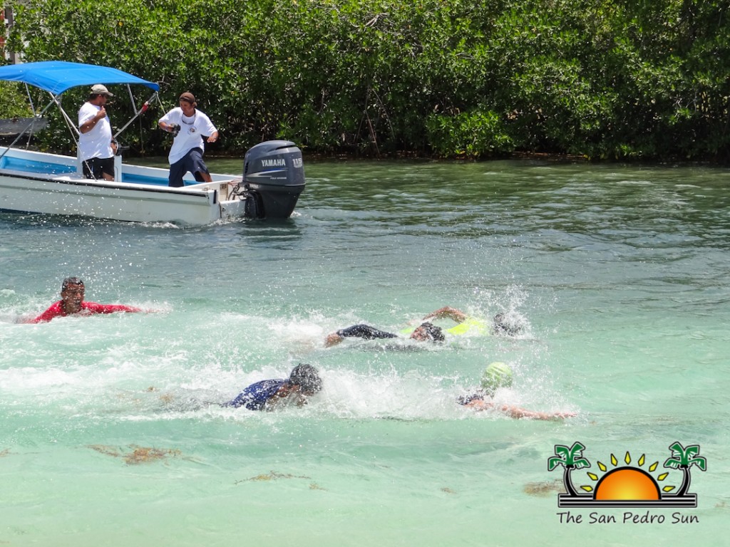 The 12 racers in the junior category (under 15) were challenged a bit more. They had to swim from under the Sir Barry Bowen Bridge to the mouth of Boca Del Rio channel (about 40 yards), then cycle two miles up the Northern Ambergris Caye road and back. Lastly, they had run from Boca del Rio to Wet Willy’s Dock and back. With a time of 16 minutes, Dixon Paguada took first place in the junior category. Andy Rivero came in second, Deandre Vasquez in third, Itai Rivero in fourth and Vicente Dawson took fifth.