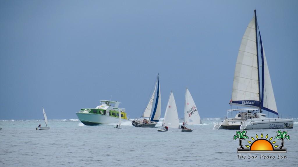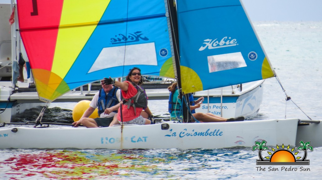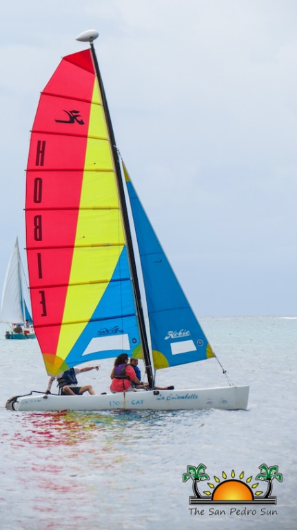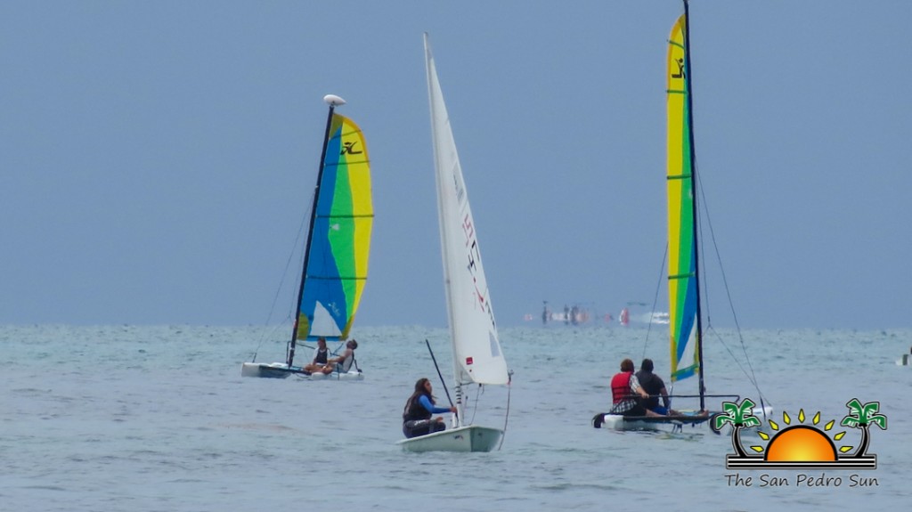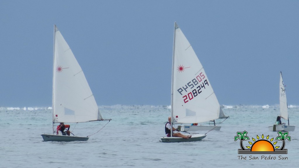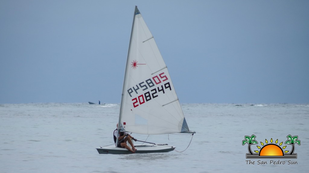 Jorge Sanchez, manning the Hobie 18 “Shalom” came screaming to the finish ahead of all others, a minute and 45 seconds ahead of Gorge Olivarez’ Laser Radial, and two minutes ahead of Antonio Ricardez’ Laser Radial. However, after the handicaps were applied to these and the other boats, seven of the children sailing Optimists swept the top seven places. Kevin Velasquez of San Pedro Sailing Club (SPSC) took the first place finisher, winning first overall for San Pedro. In second was Nashira Ricardez of Belize City Sailing Club. Mitchell Sersland of SPSC captured third place, while fourth through seventh went to Caroline Sersland, Gracie Brown, Nicholas Lausen, and Alexandra Lausen, respectively. The next seven places were won by all the Laser Radial sailors; Gorge Olivarez, Antonio Ricardez, and Sarah White taking eighth , ninth, and tenth, respectively.