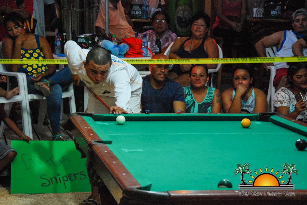 Immediately after the third place game, the crowd at the sports bar just about doubled, as it was time for the first place title match. AJ’s Snipers took on Team Amigos, the competition leader from the start. Attendees cheered on and supported their favorite players. AJ’s Snipers was leading the competition by three games when Team Amigos made a surprising comeback, tying the game 3-3. The final match was on, and the anticipation grew heavy around the pool table. Two balls remained on the table, one of them the 8-ball. Team Amigos went for the difficult and decisive shot. Armed with the cue on his left hand, the player did his magic and the 8-ball found the chosen pocket. To much applause, Team Amigos was crowned the champion of the San Pedro Class A/B 8-Ball Pool Tournament 2016. AJ’s Snipers graciously accepted their second place title, along with a prize of $350 and a 24-hour golf cart rental for each player.