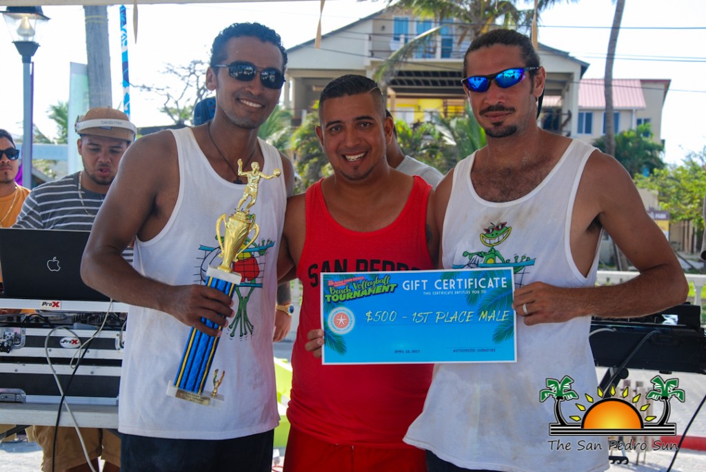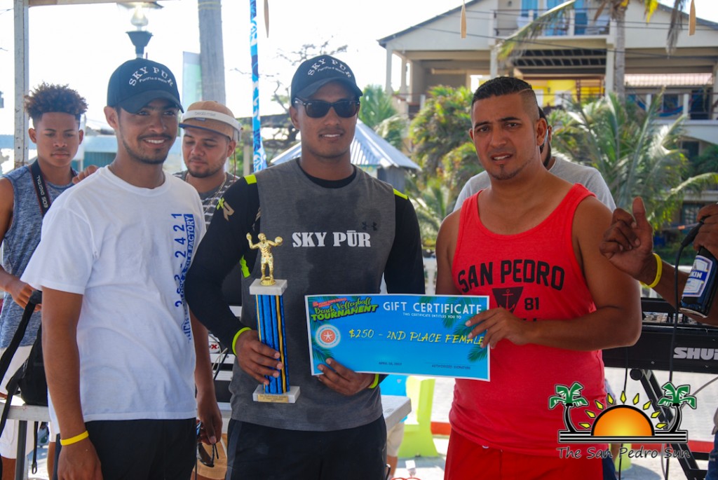 During the long Easter weekend, The San Pedro Town Council (SPTC) organized a two-day beach volleyball tournament in front of the Central Park. Held on Saturday, April 15th and Sunday, April 16th, the tournament had eight male teams, and two female teams. Cash, gifts and trophies were awarded to the top teams in each category at the end of the tournament.