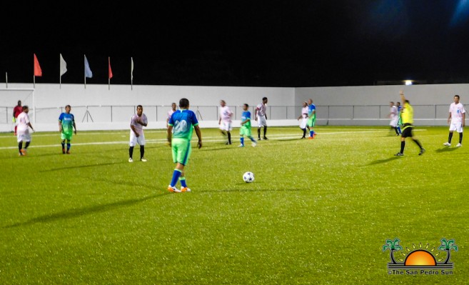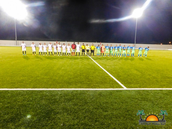The game started at 7pm, with both teams going straight on the offensive, looking to open the score. The Benque Veterans came determined to win, but the San Pedro Veterans were not an easy rival. At minute 20, island veteran Christopher Hendricks got a red card, leaving the island team with only 10 players. The pressure grew intense for the island team as they now had a disadvantage against the Benque Veterans. The match continued with crosses and passes, but the first half came to an end with no score.