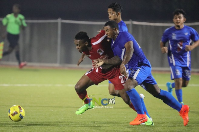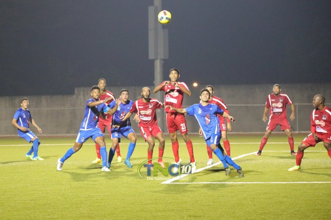 The match began at 8PM, with only three minutes into the game, the Bandits Georgie Welcome scored the first goal for his team. The game continued with crosses and passes, with both teams trying to score more goals. It wasn’t until minute 34 that Bandits Georgie Welcome found his way once again and netted another goal for his team. The Pirates Jesse Smith responded with a goal for the island team, at minute 47. The first half came to an end with the home team leading 2-1.