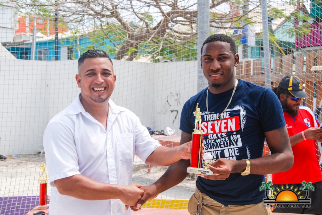 In addition to team trophies, individual awards were given to various tournament players. “Best Male Outfielder” went to Damion Pollard, while Aliyah Pilgrim won “Best Female Outfielder”. “Best Male Infielder” was Jason Carlson, and the “Best Female Infielder” was Karen Gillet. “Most Stolen Bases” went to Rene Flowers in the male category, while Aliyah Pilgrim took the prize in the female category. The best “Male Batting Average” award went to Damion Pollard, and the best “Female Batting Average” went to Lydia Cacho. The pitcher with the “Most Strike Outs” was Konrad Gonzales, and the pitcher with “The Most Wins” was Jermain Chi. Highest “Runs Batted In” saw Charles Richard winning in the male category, and Lydia Cacho took the female’s prize. “Most Valuable Player” of the San Pedro Co-Ed Softball Tournament was Damion Pollard.