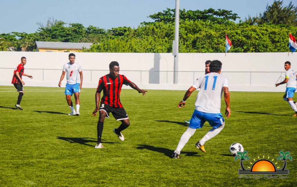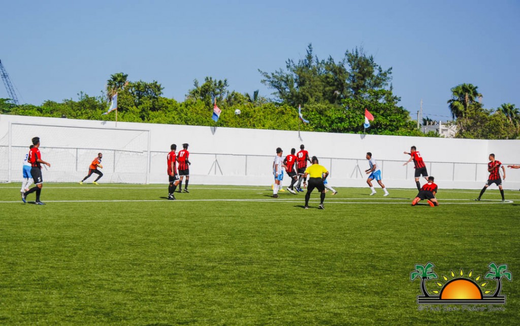 At 3PM, after fans had gathered inside the Ambergris Stadium in San Pedro Town, the island team kicked off the game with full control of the ball. The Assassins were not an easy rival, and they shored up their defense and held off the Pirates’ attempts to score throughout the first half. That is, until minute 45, when Pirates’ Jesse Smith scored the first goal, taking his team into halftime with a 1-0 lead.