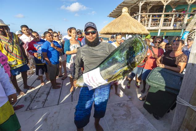 During the second day of the competition, reports of Dorado catches increased as they were reeled in in great quantities. Team Brieene Called in saying that they caught a monster Dorado and they did not disappoint. Their 34.5 lbs Bull Dorado secured the largest Dorado prize of $1,000 plus a trophy. Unfortunately, there were no more reports on Billfish. At the end of the second day, all participating boats returned to Caye Caulker by 5PM for the official closing ceremony.