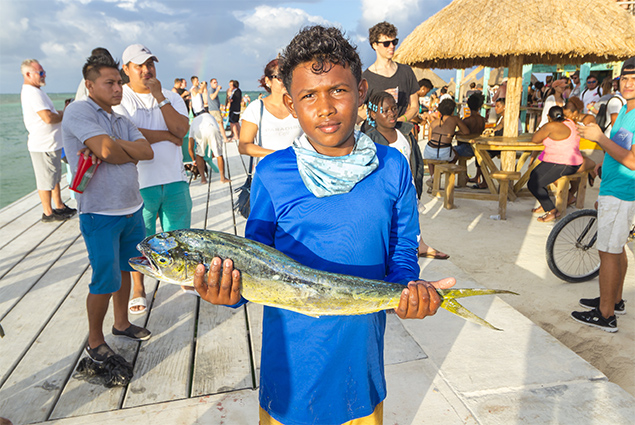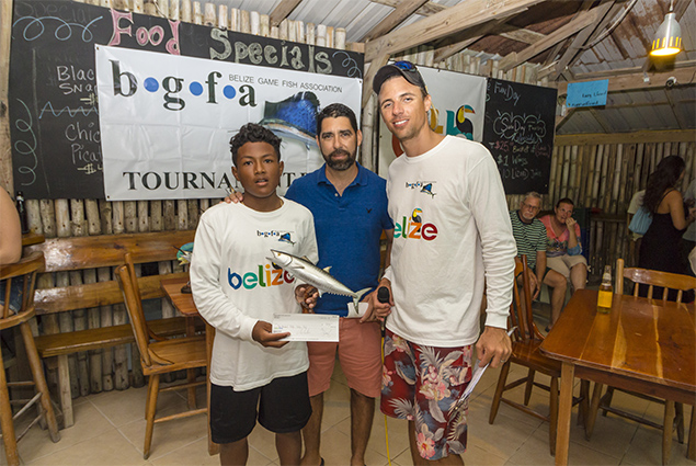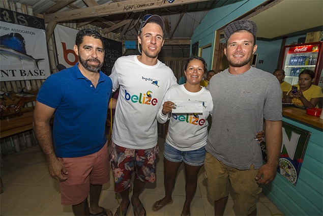 On day one, Belize City’s Team Boca del Toro called in a Billfish hook up, and by 9AM they raced to the tournament’s base with their release video of a White Marlin. This earned them an automatic $500 for being the first boat to do so. Throughout the morning, anglers kept calling in Dorado catches. However, at midday, Stir It Up called in a Blue Marlin release, catapulting them to the first place early in the tournament. At the end of the first day, over 20 fish, mainly Dorado, were waiting to be weighed by the Lazy Lizard. The majority of these catches were brought by the junior and female anglers.